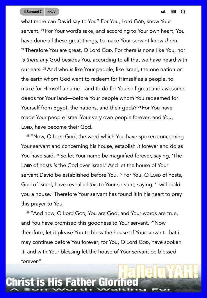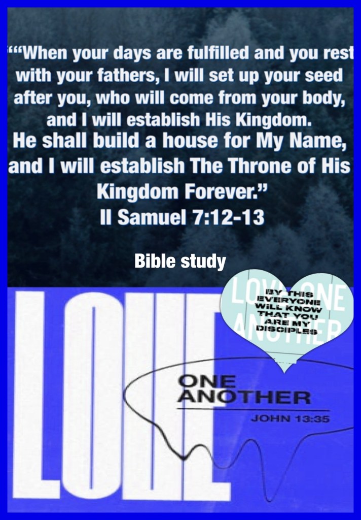 ““When your days are fulfilled and you rest with your fathers, I will set up your seed after you, who will come from your body, and I will establish His Kingdom. He shall build a house for My Name, and I will establish The Throne of His Kingdom Forever.”II Samuel 7:12-13 “By this all will know that you are My disciples, if you have love for one another.”” John 13:35