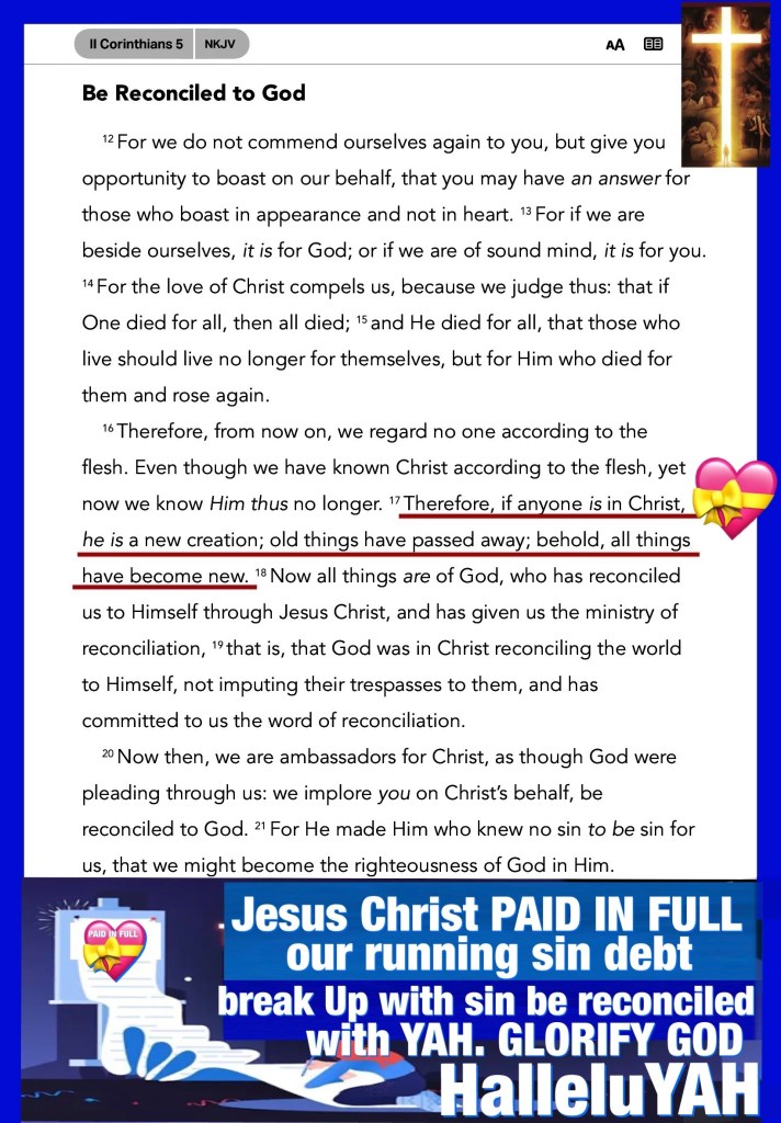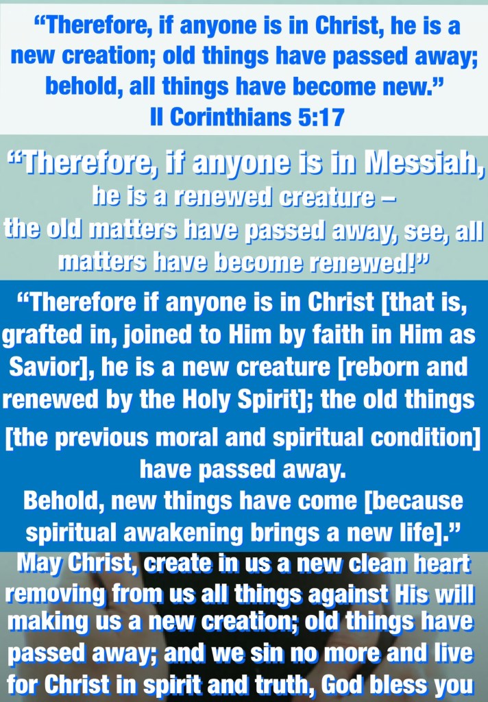 2Co 5:17 Therefore if any man be in Christ, he is a new creature: old things are passed away; behold, all things are become new.