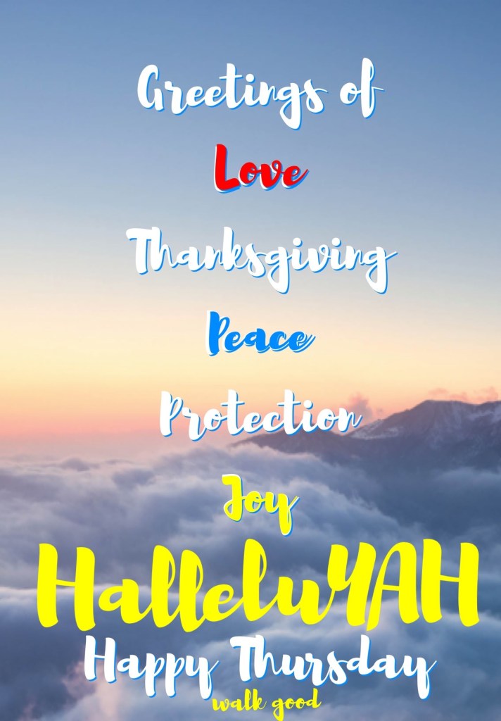 Blessed good morning saint’s of YAH, may you have a wonderful day productive in ways that nurture fruit for YAH’s Kingdom and streams of love and blessings from your heart. God loves you! God save you! God seal you in Christ Jesus Name I pray. Amen. We’re here we are blessed have a Happy Thursday give Thanks, share His love. Walk Good. 🤗