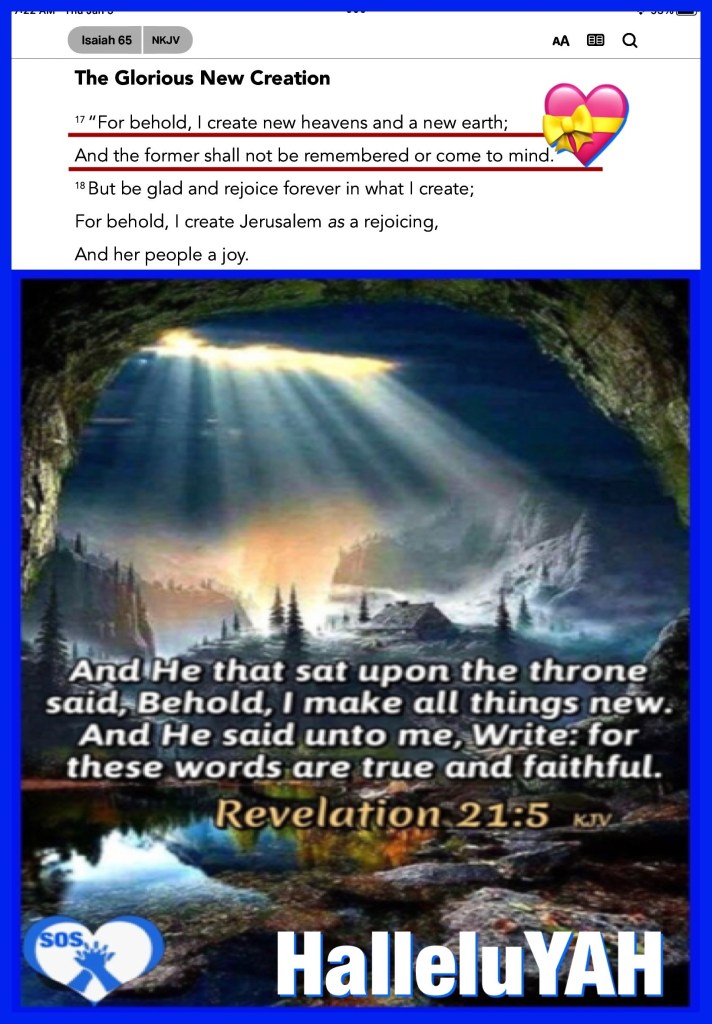 Isa 65:17 For, behold, I create new heavens and a new earth: and the former shall not be remembered, nor come into mind.
