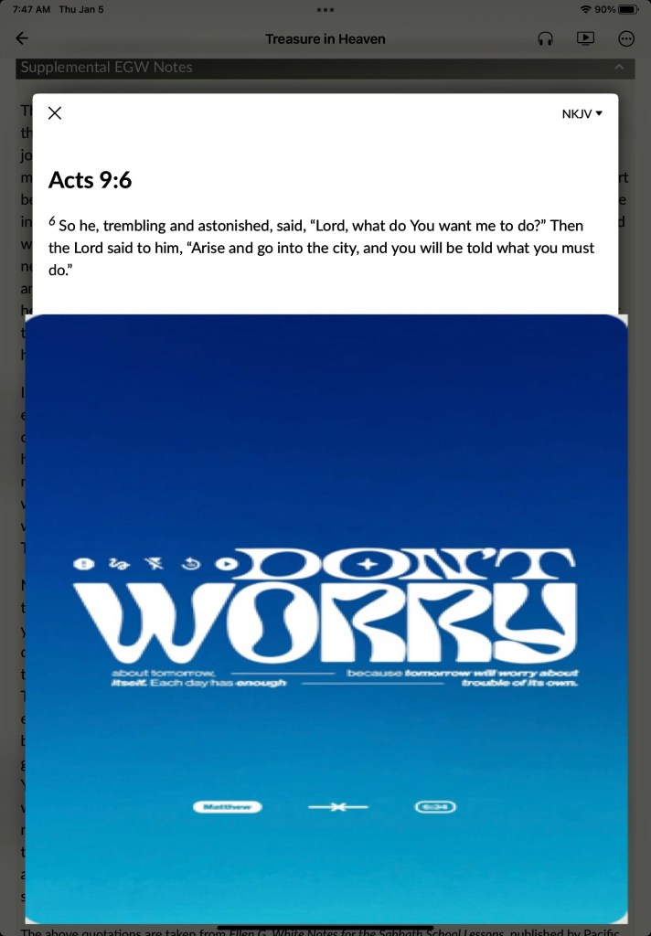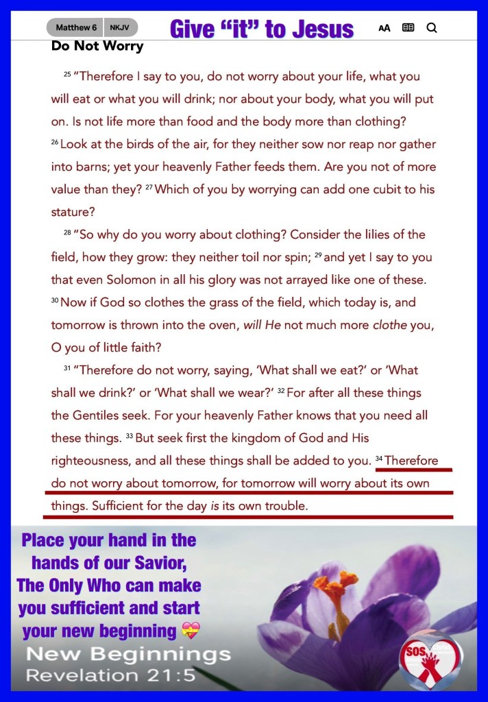 Mat 6:34 Take therefore no thought for the morrow: for the morrow shall take thought for the things of itself. Sufficient unto the day is the evil thereof.