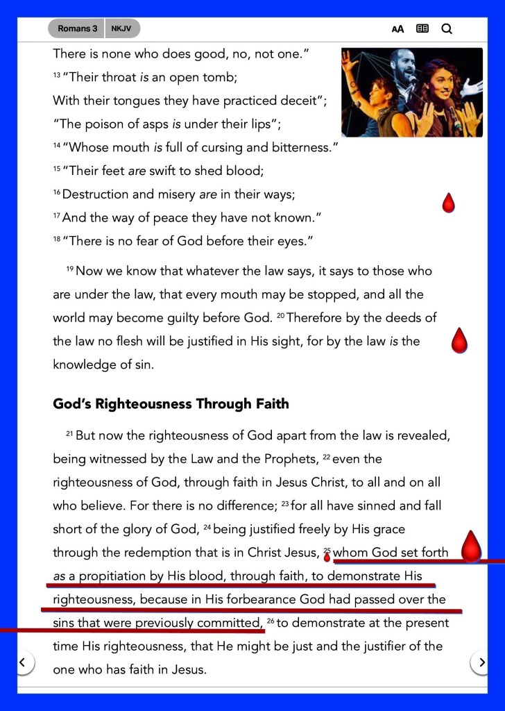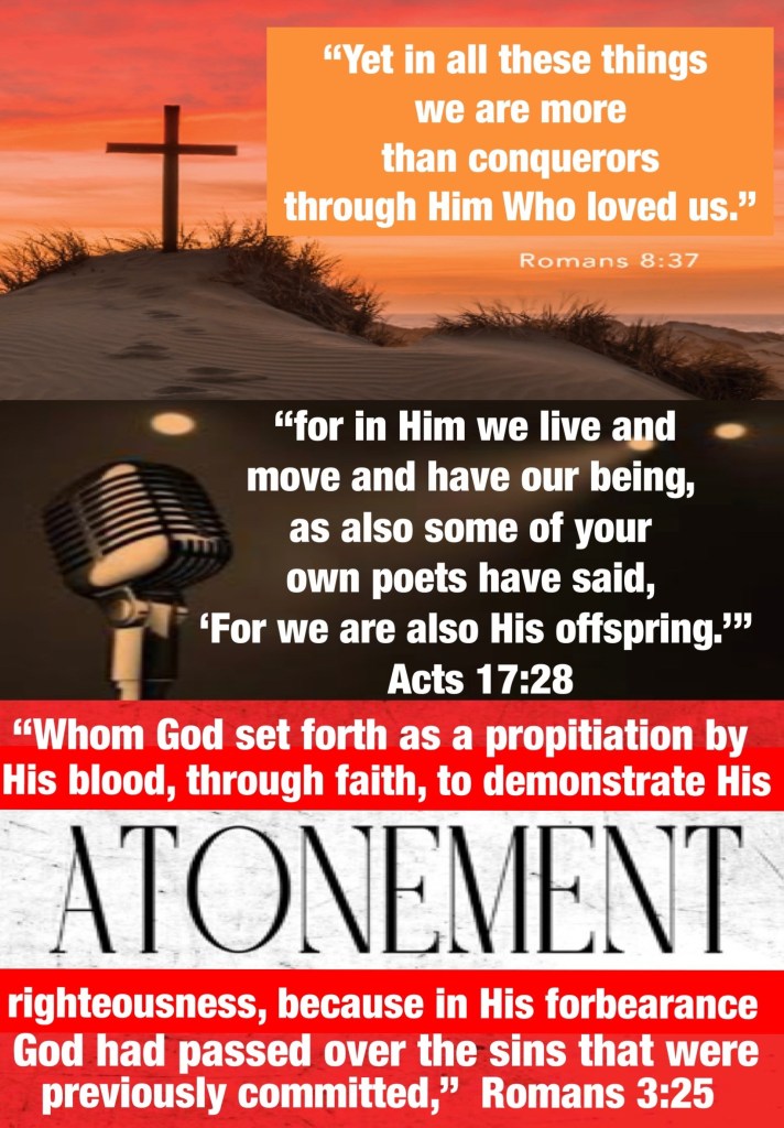 βYet in all these things we are more than conquerors through Him who loved us.βRomans 8:37 βfor in Him we live and move and have our being, as also some of your own poets have said, βFor we are also His offspring.ββ Acts 17:28 βwhom God set forth as a propitiation by His blood, through faith, to demonstrate His righteousness, because in His forbearance God had passed over the sins that were previously committed,β Romans 3:25