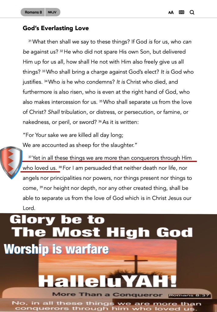 Rom 8:37 Nay, in all these things we are more than conquerors through him that loved us.