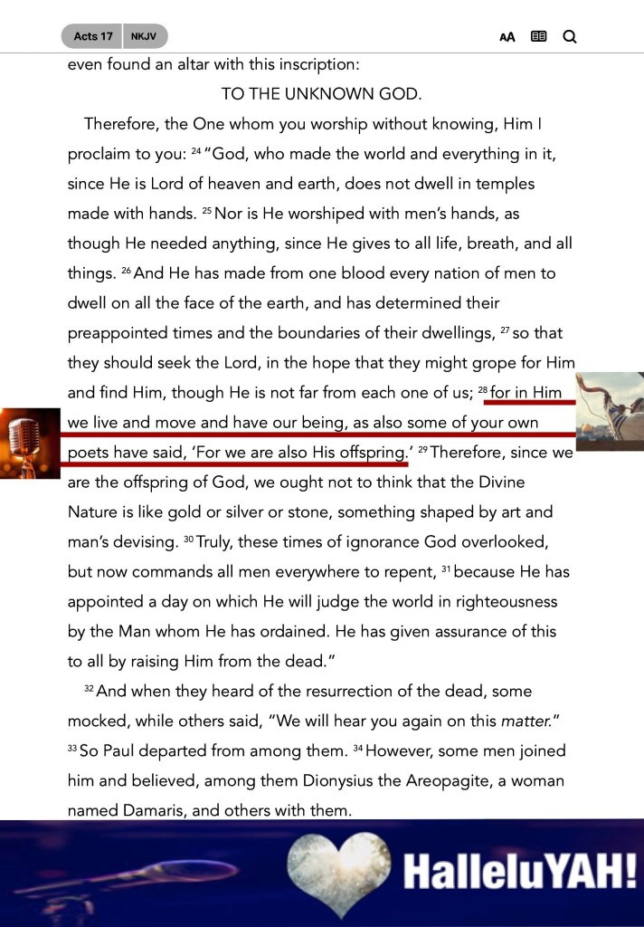 Act 17:28 For in him we live, and move, and have our being; as certain also of your own poets have said, For we are also his offspring.