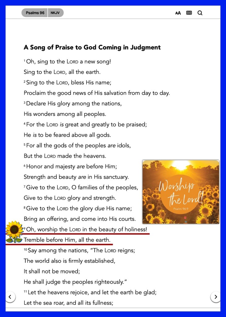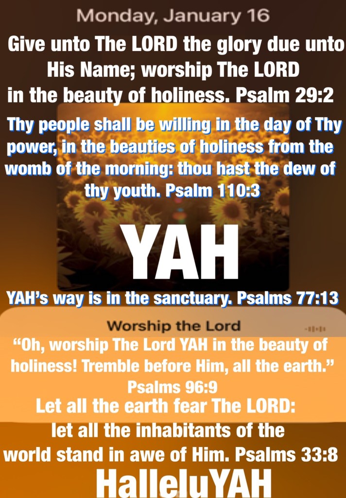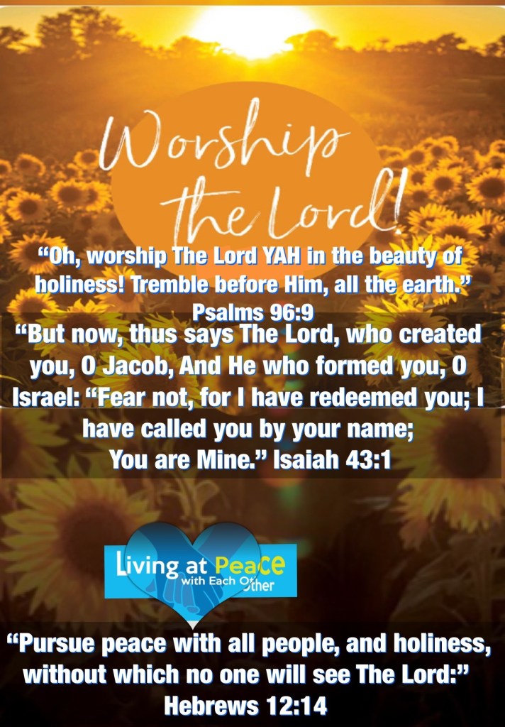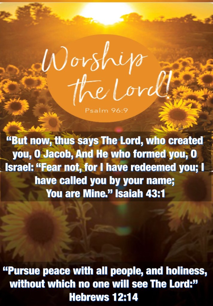 “Oh, worship The Lord in the beauty of holiness! Tremble before Him, all the earth.”Psalms 96:9 “But now, thus says The Lord, who created you, O Jacob, And He who formed you, O Israel: “Fear not, for I have redeemed you; I have called you by your name; You are Mine.” Isaiah 43:1 “Pursue peace with all people, and holiness, without which no one will see The Lord:” Hebrews 12:14