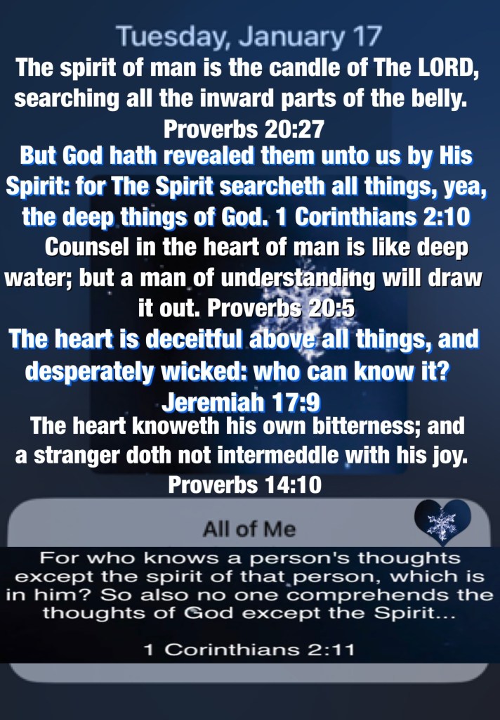 what: Pro 14:10, Pro 20:5, Pro 20:27; Jer 17:9