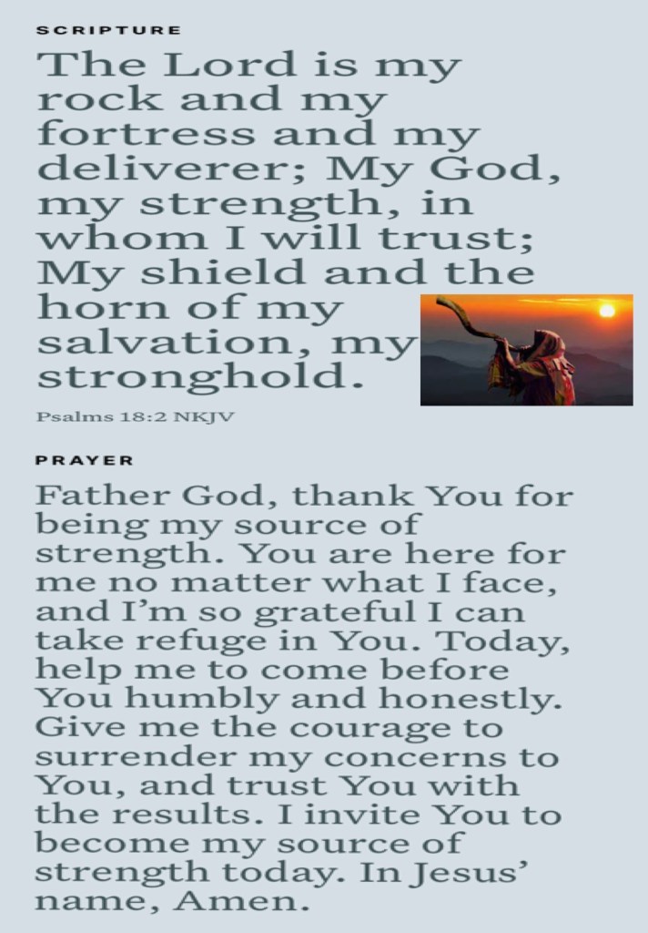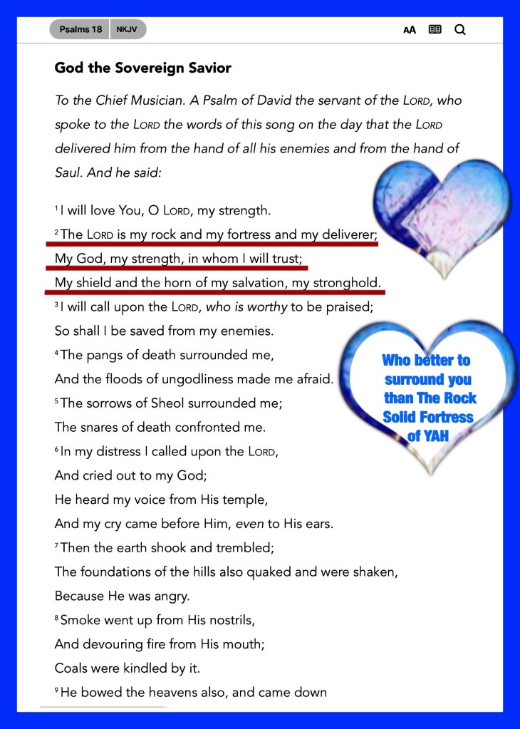 Psa 18:2 The LORD is my rock, and my fortress, and my deliverer; my God, my strength, in whom I will trust; my buckler, and the horn of my salvation, and my high tower.