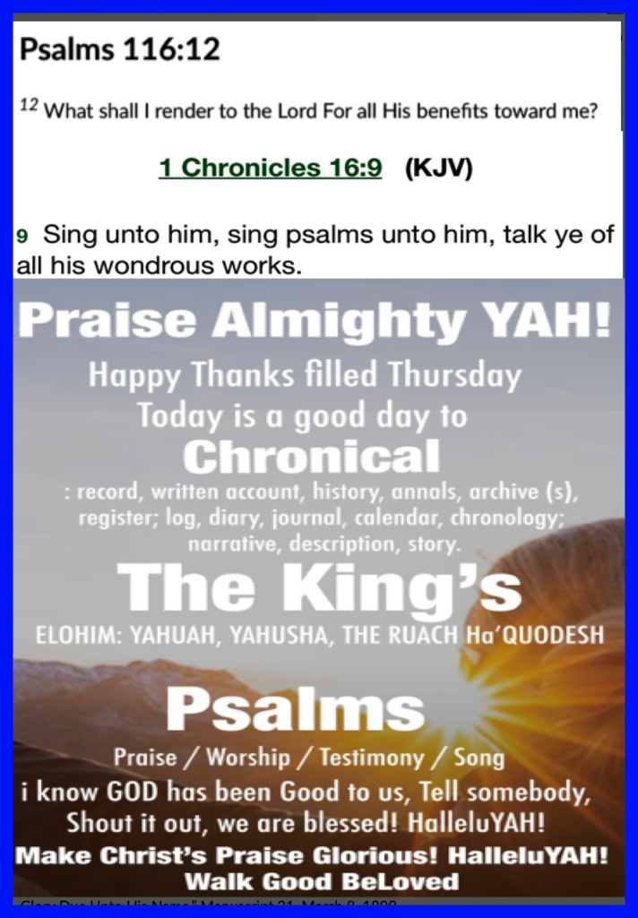 Psalms 116:12 What shall I render to The Lord For all His benefits toward me?