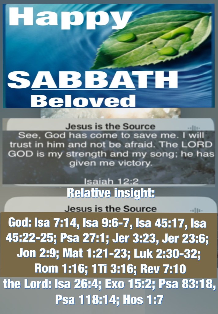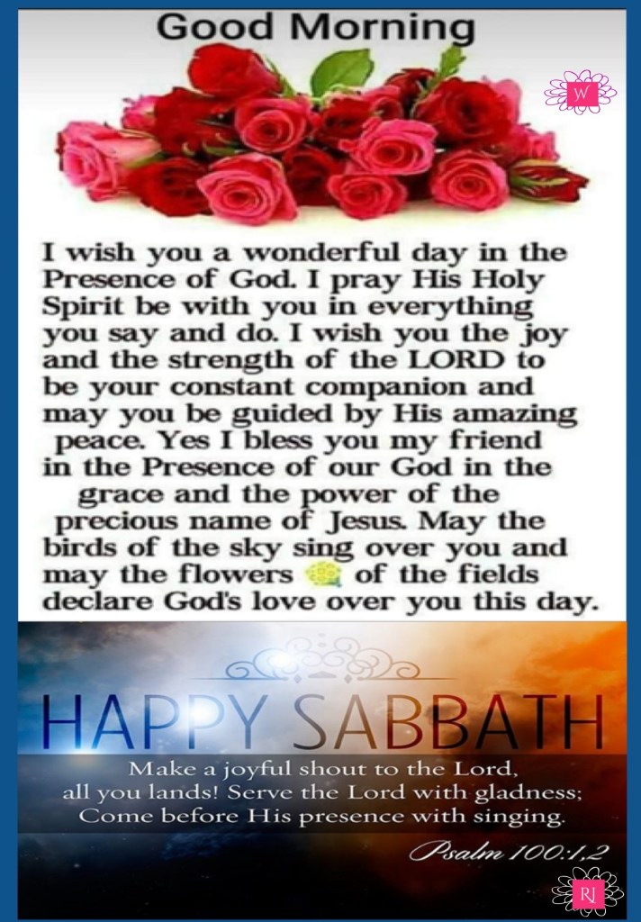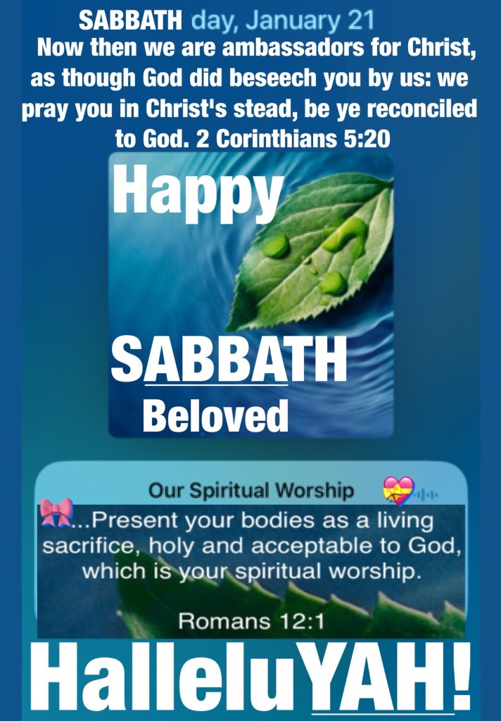 Happy Sabbath Day beloved may you enjoy this day in the presence of Christ and present yourself before Him in Thanks, Praise, Sacrifice and Alignment to YAHβs will, way, plan for your life to the glory of His Name Be Loved, Be Blessed, Walk Good.