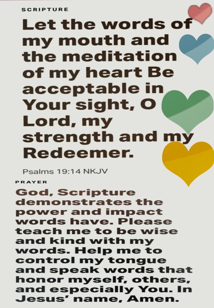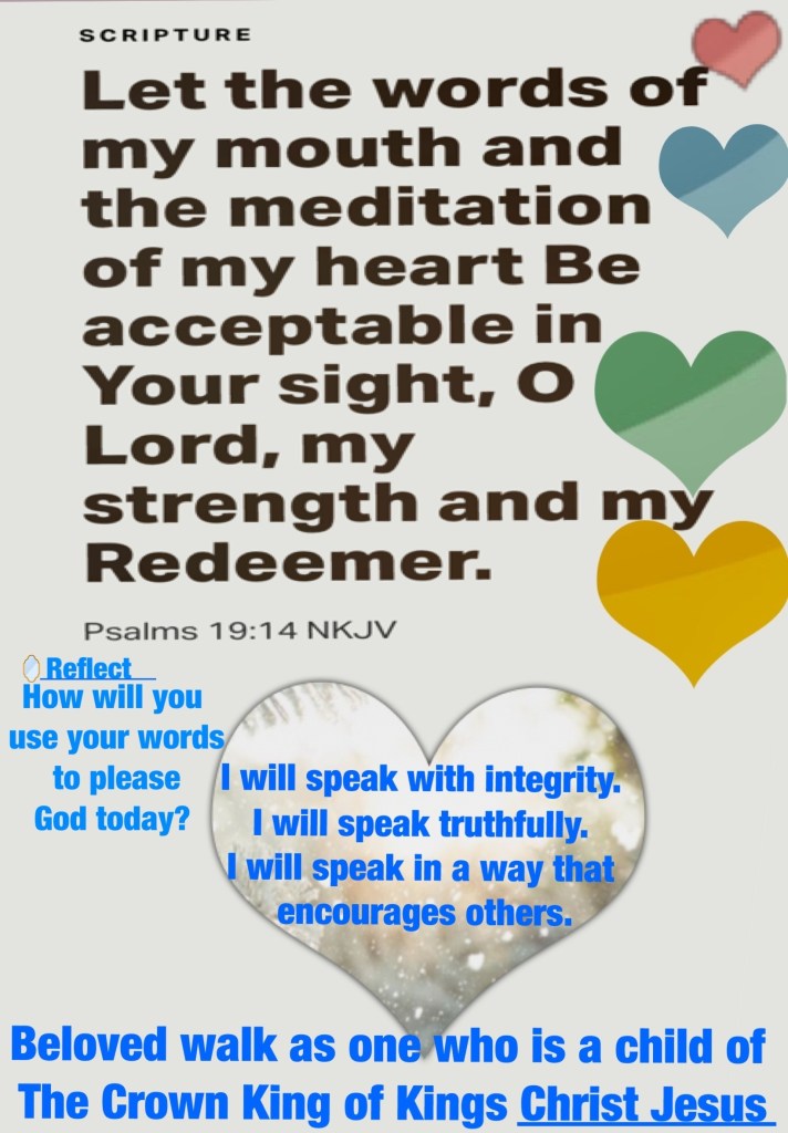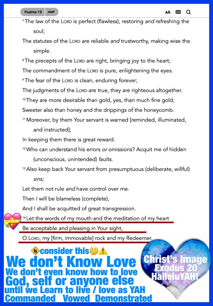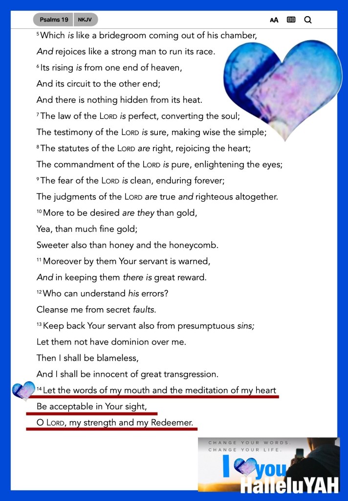 Psa 19:14 Let the words of my mouth, and the meditation of my heart, be acceptable in thy sight, O LORD, my strength, and my redeemer.