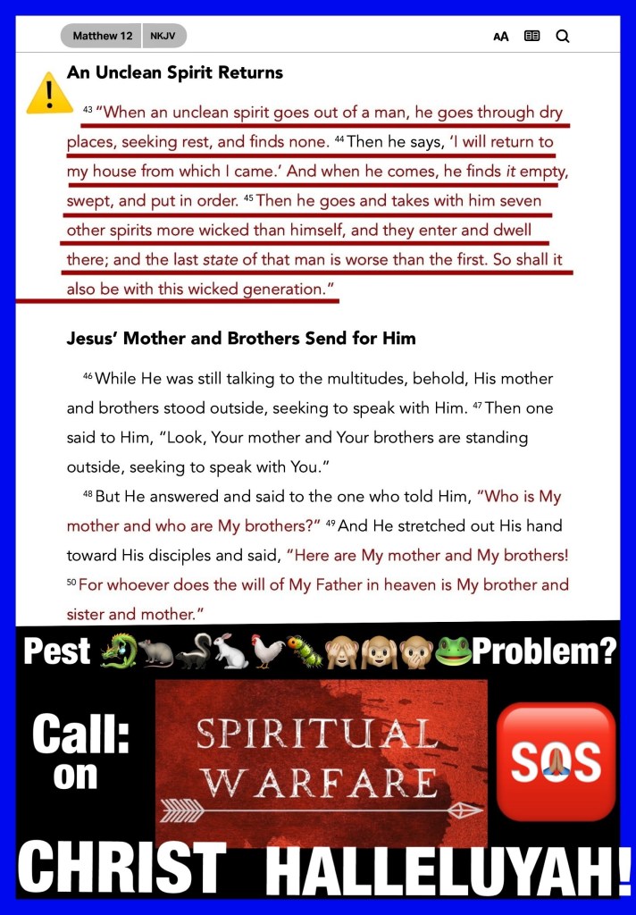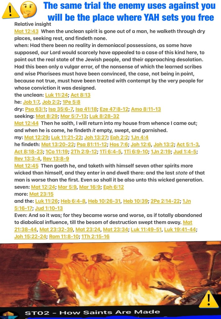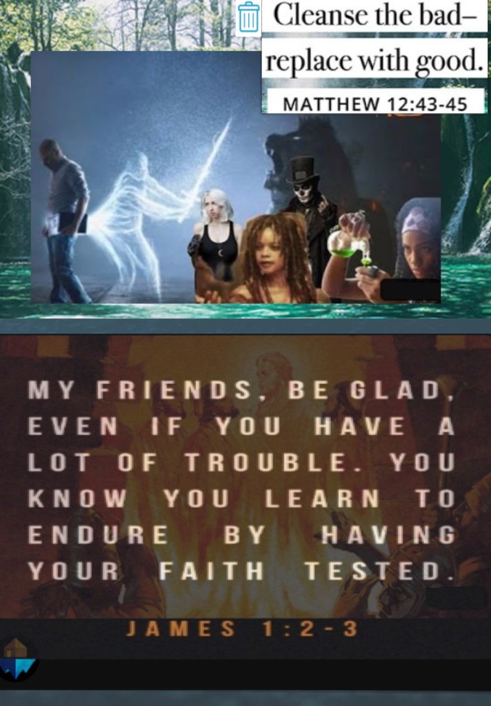 Beloved I believe there’s a recipe for creating a witch/ warlock and a recipe for creating a saint unfortunately for us who long for Christ’s Presence this recipe is one and the same. “But as for you, you meant evil against me; but God meant it for good, in order to bring it about as it is this day, to save many people alive.” Genesis 50:20 a crisis is an event that must draw you closer to YAH or else you risk entertaining another spirit (an unclean spirit) God forbid! Walk Good