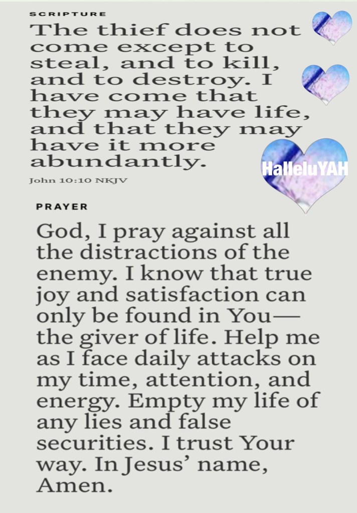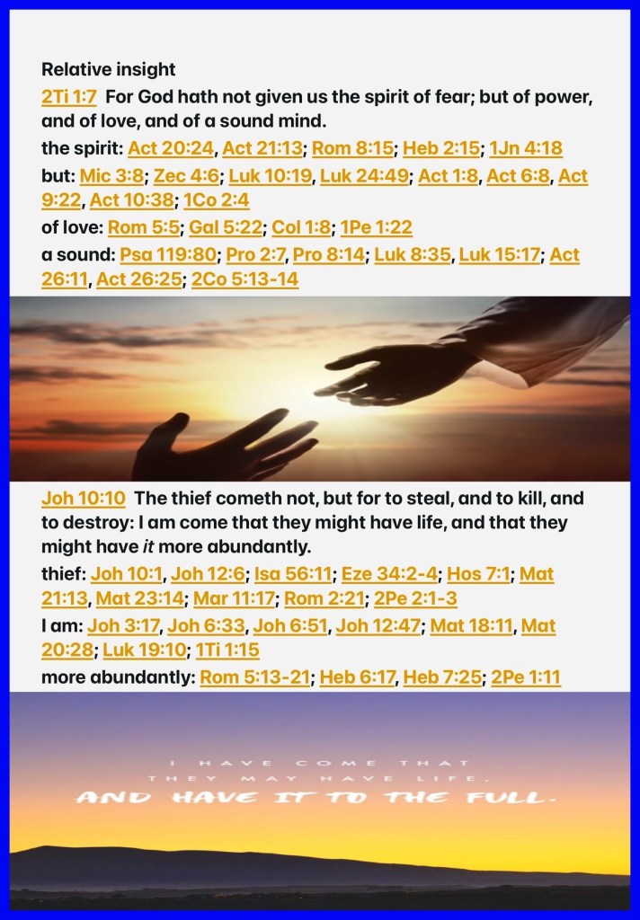 βFor God has not given us a spirit of fear, but of power and of love and of a sound mind.β II Timothy 1:7 βThe thief does not come except to steal, and to kill, and to destroy. I have come that they may have life, and that they may have it more abundantly.β John 10:10