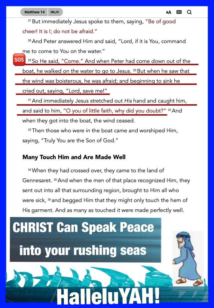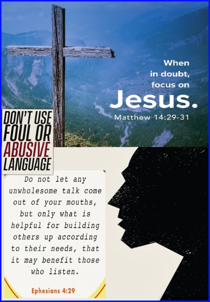 โSo He said, โCome.โ And when Peter had come down out of the boat, he walked on the water to go to Jesus. But when he saw that the wind was boisterous, he was afraid; and beginning to sink he cried out, saying, โLord, save me!โ And immediately Jesus stretched out His hand and caught him, and said to him, โO you of little faith, why did you doubt?โโ Matthew 14:29-31 โLet no corrupt word proceed out of your mouth, but what is good for necessary edification, that it may impart grace to the hearers.โ Ephesians 4:29