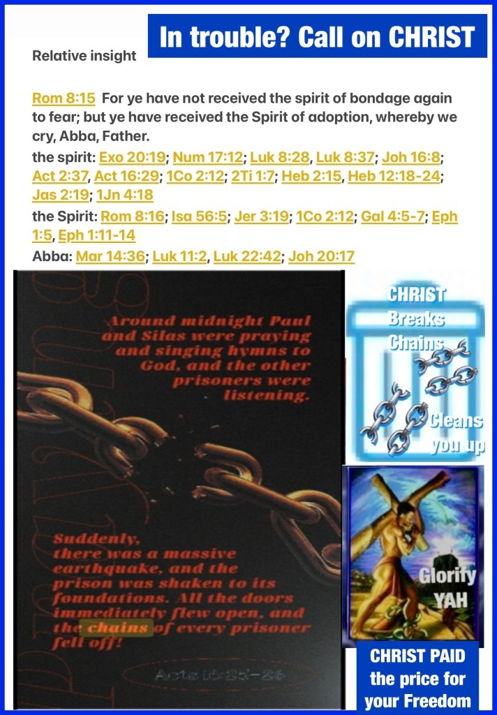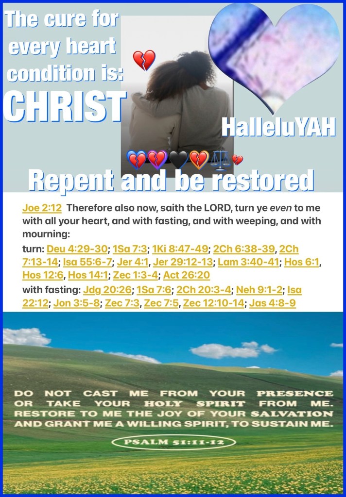 “For you did not receive the spirit of bondage again to fear, but you received the Spirit of adoption by whom we cry out, “Abba, Father.”” Romiyim (Romans) 8:15 TS2009 ““Yet even now,” declares יהוה, “turn to Me with all your heart, and with fasting, and with weeping, and with mourning.” And tear your heart and not your garments, and turn back to יהוה your Elohim, for He shows favour and is compassionate, patient, and of great loving-commitment, and He shall relent concerning the evil.” Yo’ĕl (Joel) 2:12-13 TS2009