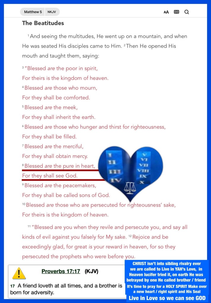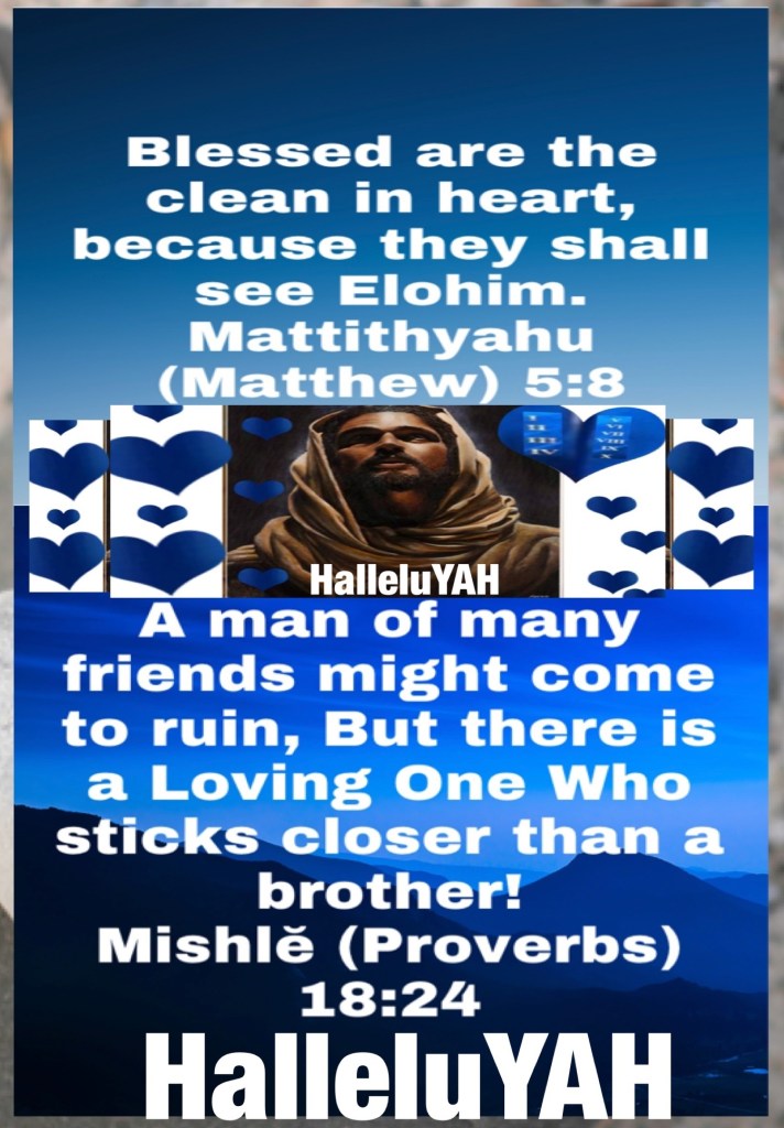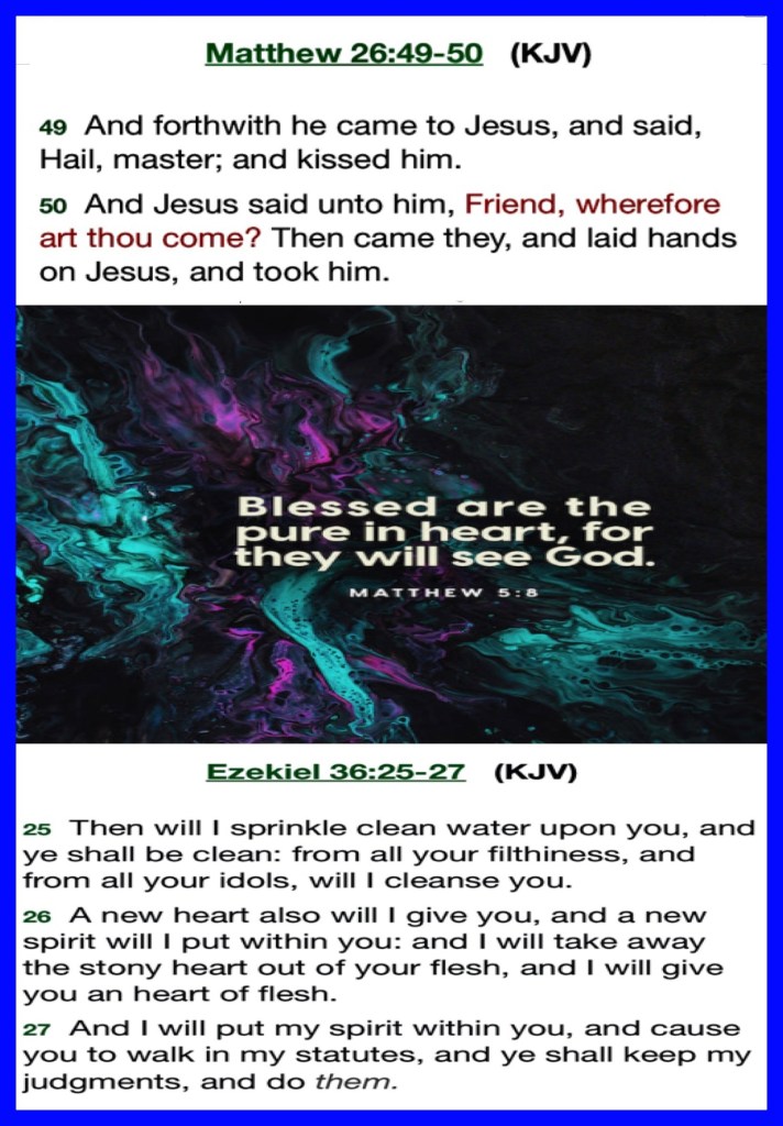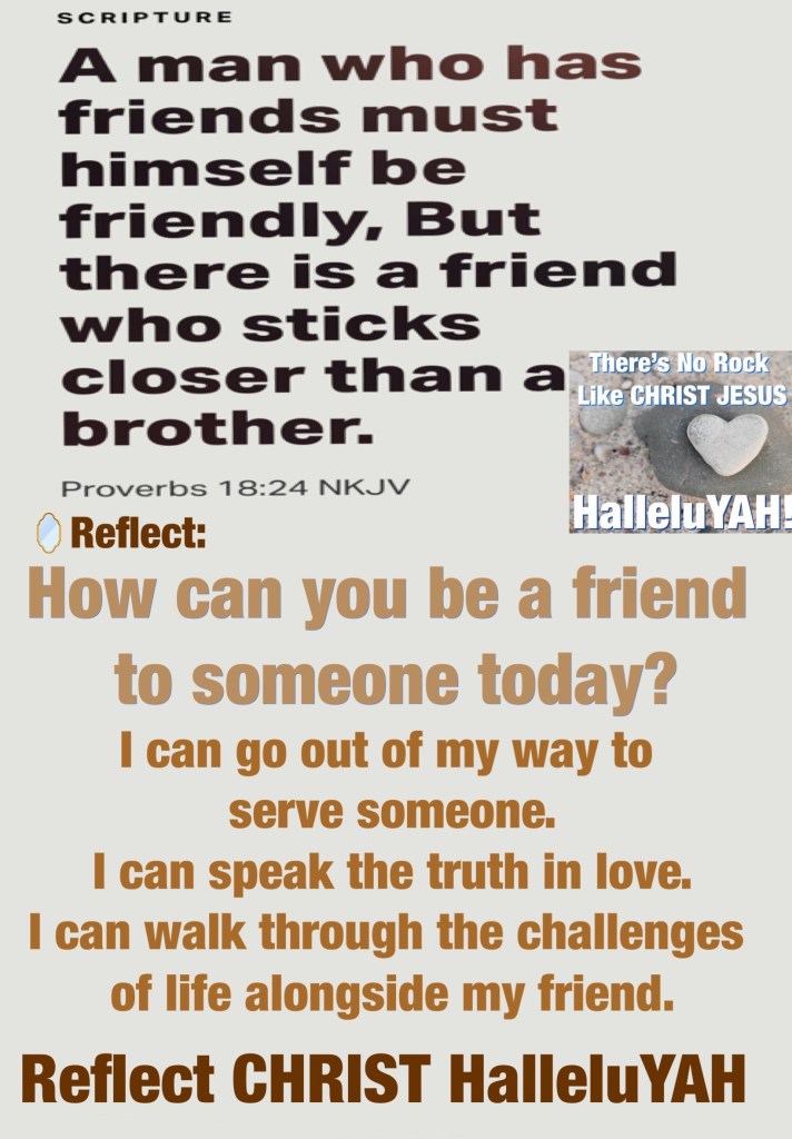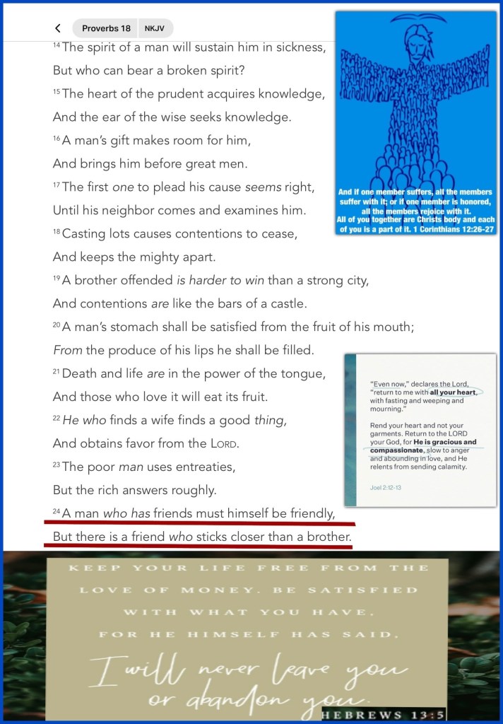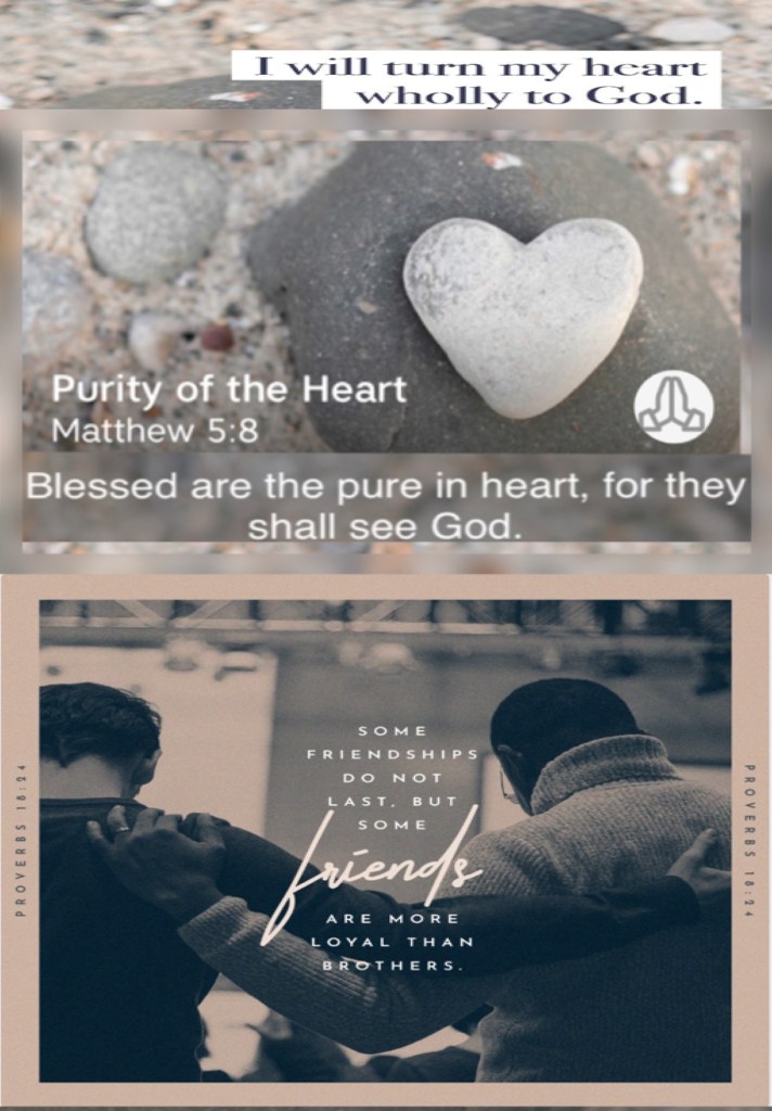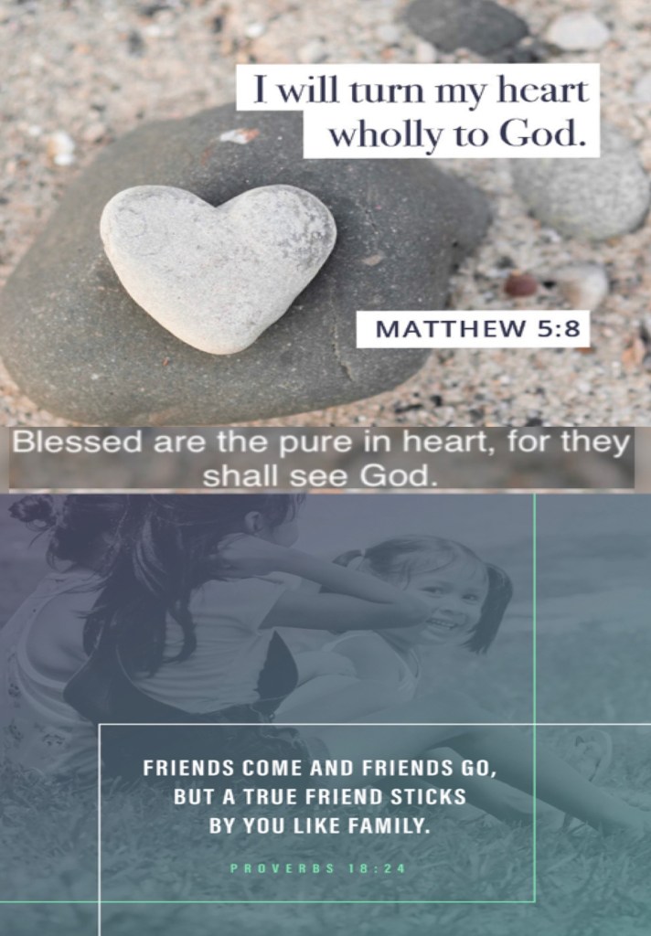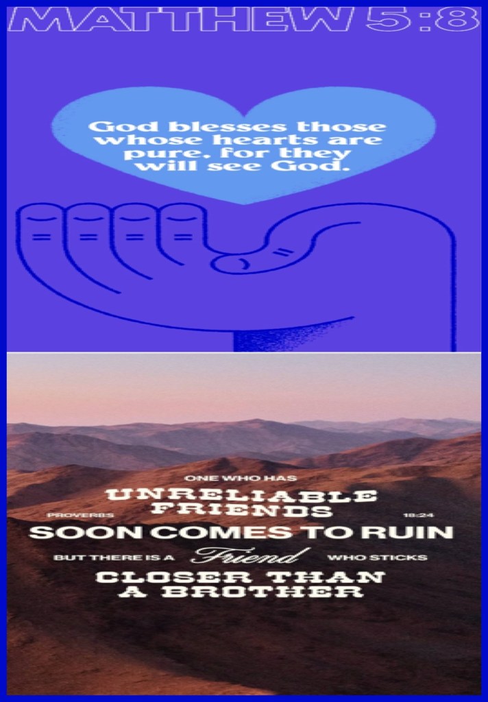 “Blessed are the pure in heart, For they shall see God.” Matthew 5:8 “A man who has friends must himself be friendly, But there is a friend who sticks closer than a brother.” Proverbs 18:24