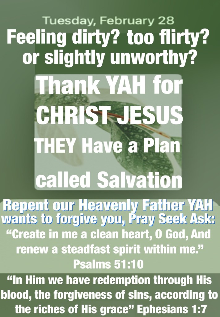 BeLoved child of The Most High God, YAH made saving you His number one priority so much so He stepped down from Heaven into this sin sick world to deliver us from all evil, we don’t have to be slave to sin and right now is the time to repent, fully and receive Forgiveness and move different, live to honor CHRIST, it’s not easy but it will be worth it just like how nothing CHRIST came and did was easy but He deemed our lives and salvation worth it. That is a tremendous amount of Love and Sacrifice. Thank You YAHUAH for all You’re doing and have done for us! Help us all to see our need and save our souls in CHRIST JESUS Name ( YAHUSHA HA’MASSIACH) I pray. Amen HalleluYAH!