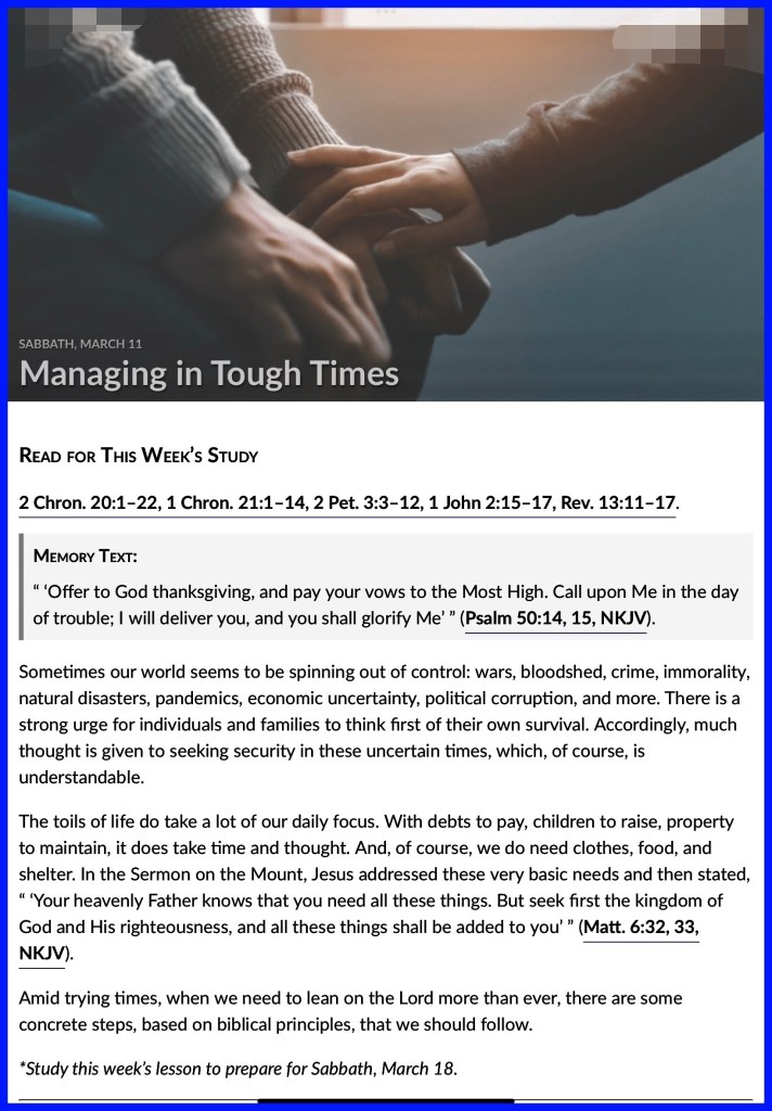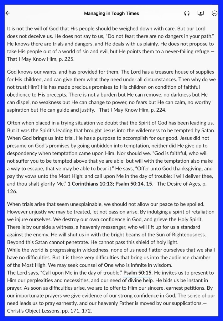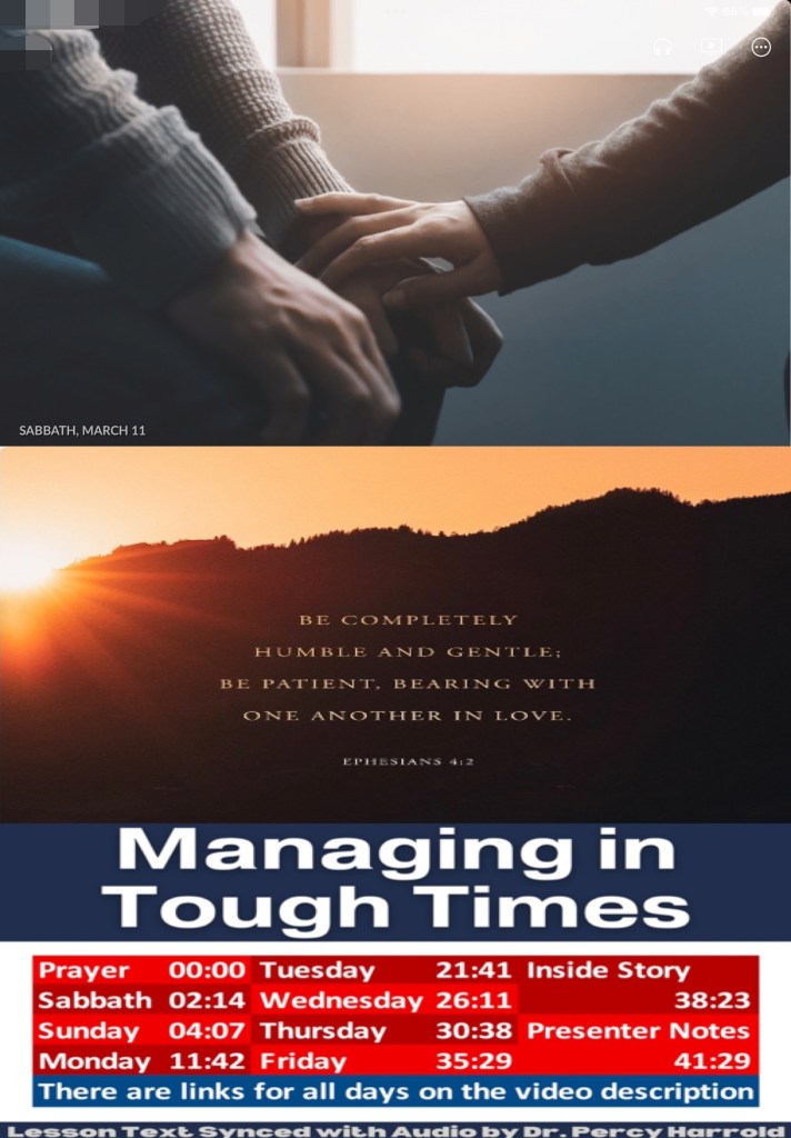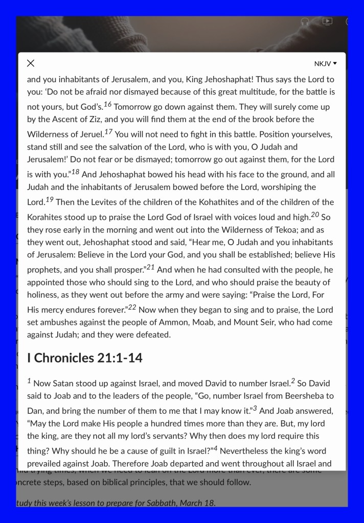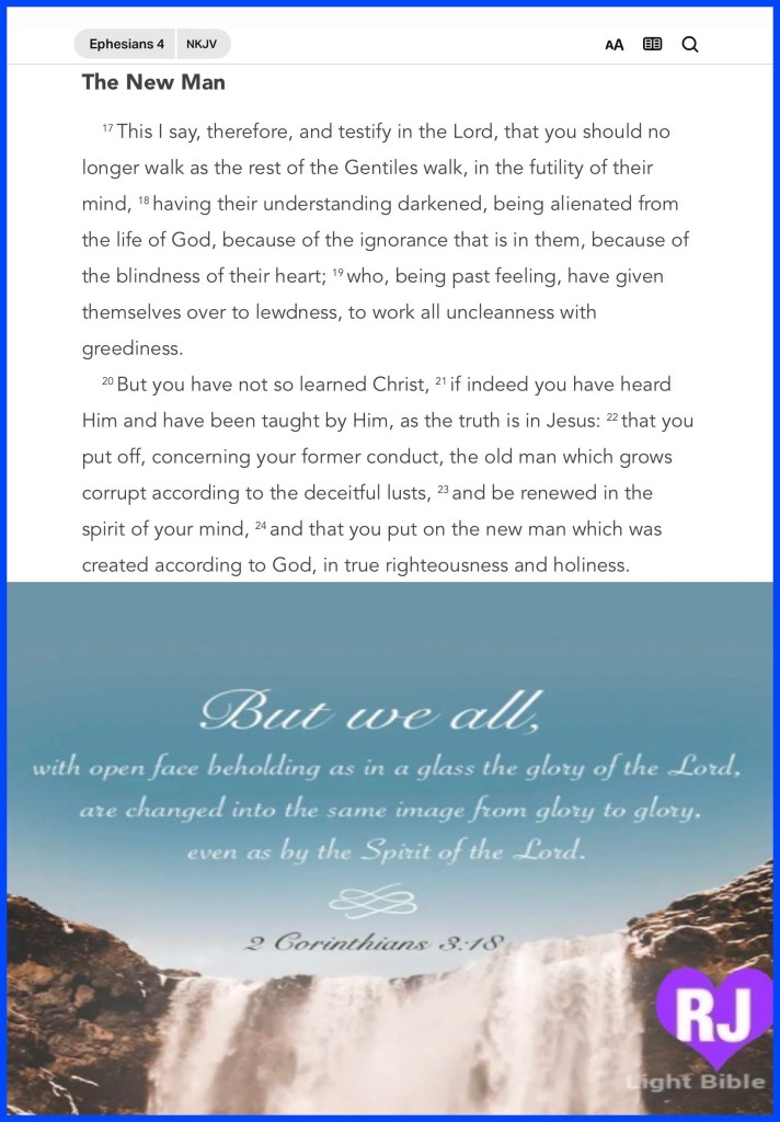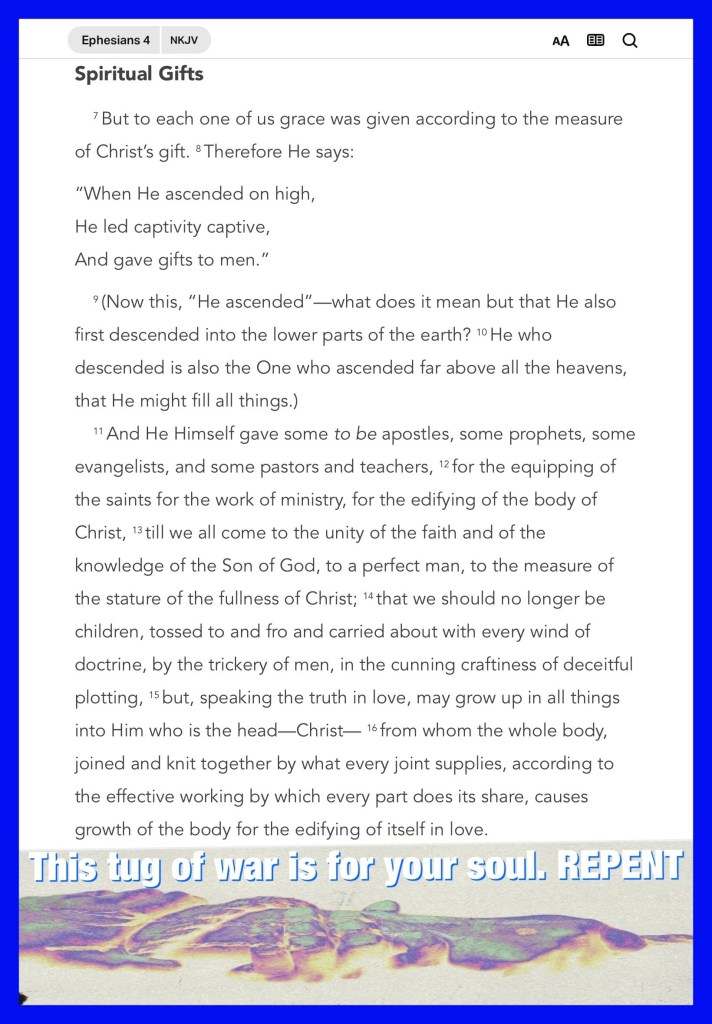 “with all lowliness and gentleness, with longsuffering, bearing with one another in love, endeavoring to keep the unity of The Spirit in the bond of peace.” Ephesians 4:2-3 “Set your mind on things above, not on things on the earth.” Colossians 3:2
