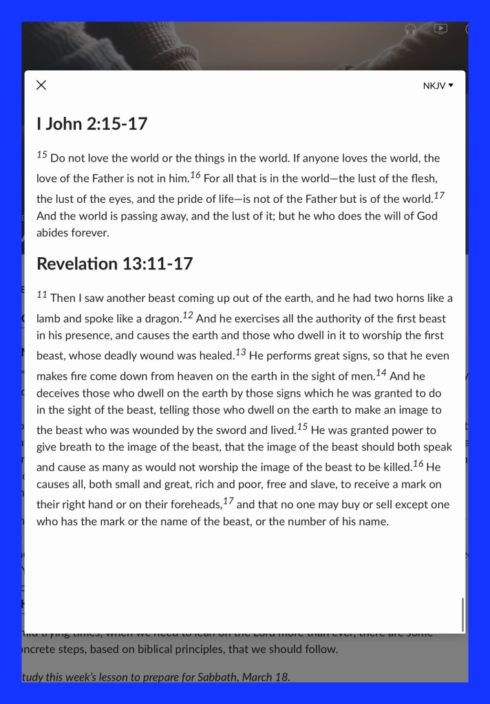1 John 2:15-17 Love not the world, neither the things that are in the world. If any man love the world, the love of the Father is not in him. For all that is in the world, the lust of the flesh, and the lust of the eyes, and the pride of life, is not of the Father, but is of the world. And the world passeth away, and the lust thereof: but he that doeth the will of God abideth for ever.