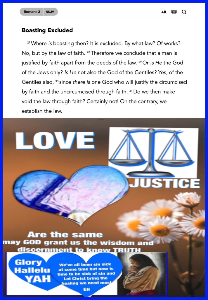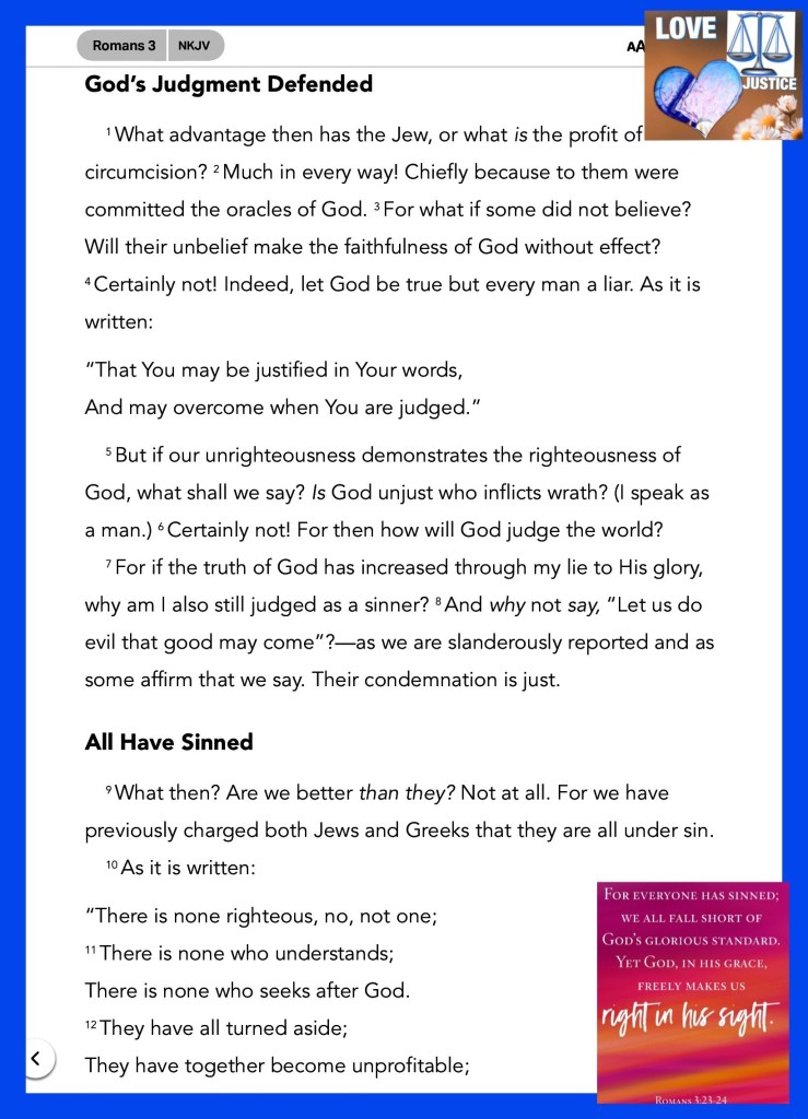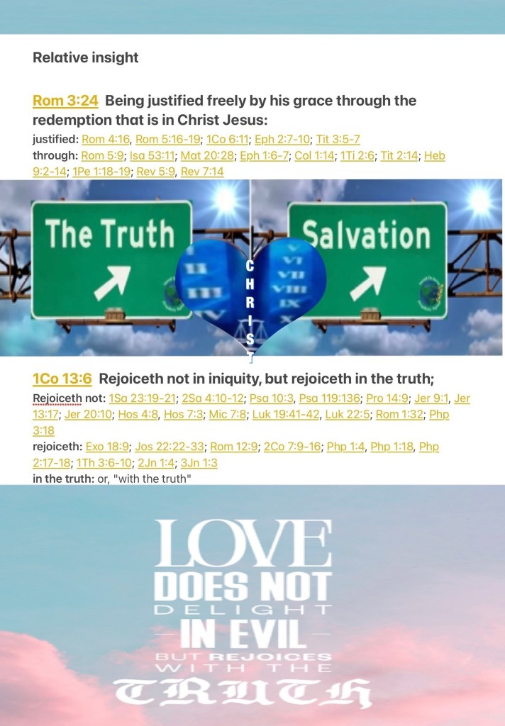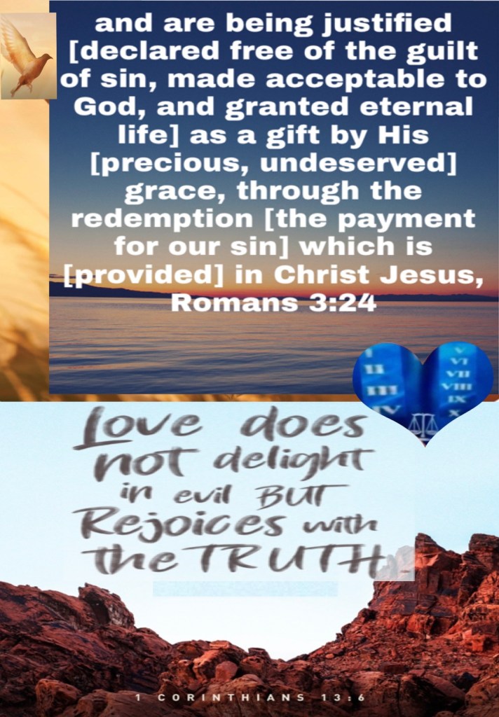 “being justified freely by His grace through the redemption that is in Christ Jesus,” Romans 3:24 “does not rejoice in iniquity, but rejoices in the truth;” I Corinthians 13:6