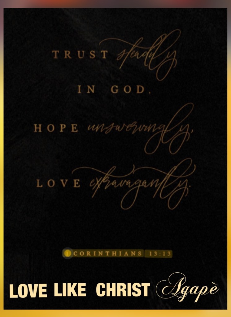 Live in YAH’s Agapè Love: Love deeply, love freely, love intentionally, love with purpose, love in every way modeled by CHRIST and expressed in His WORD.