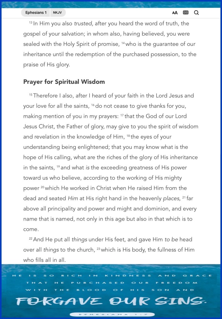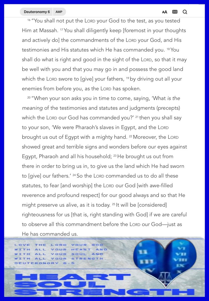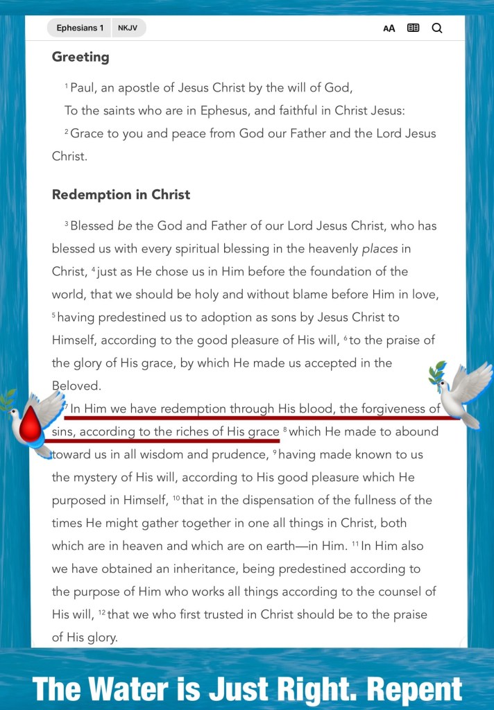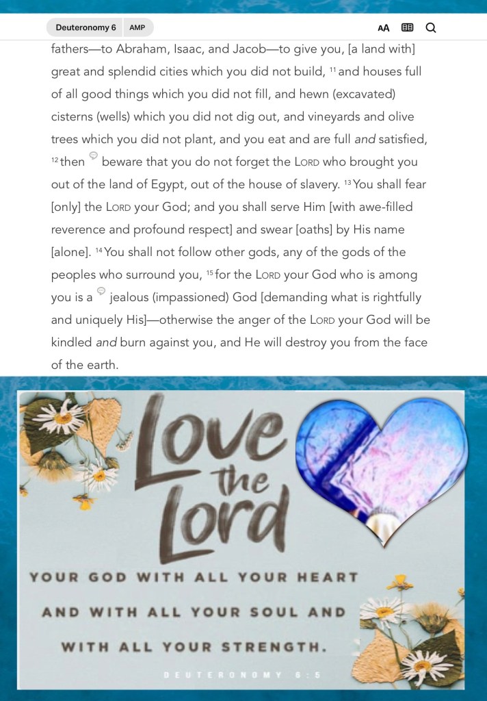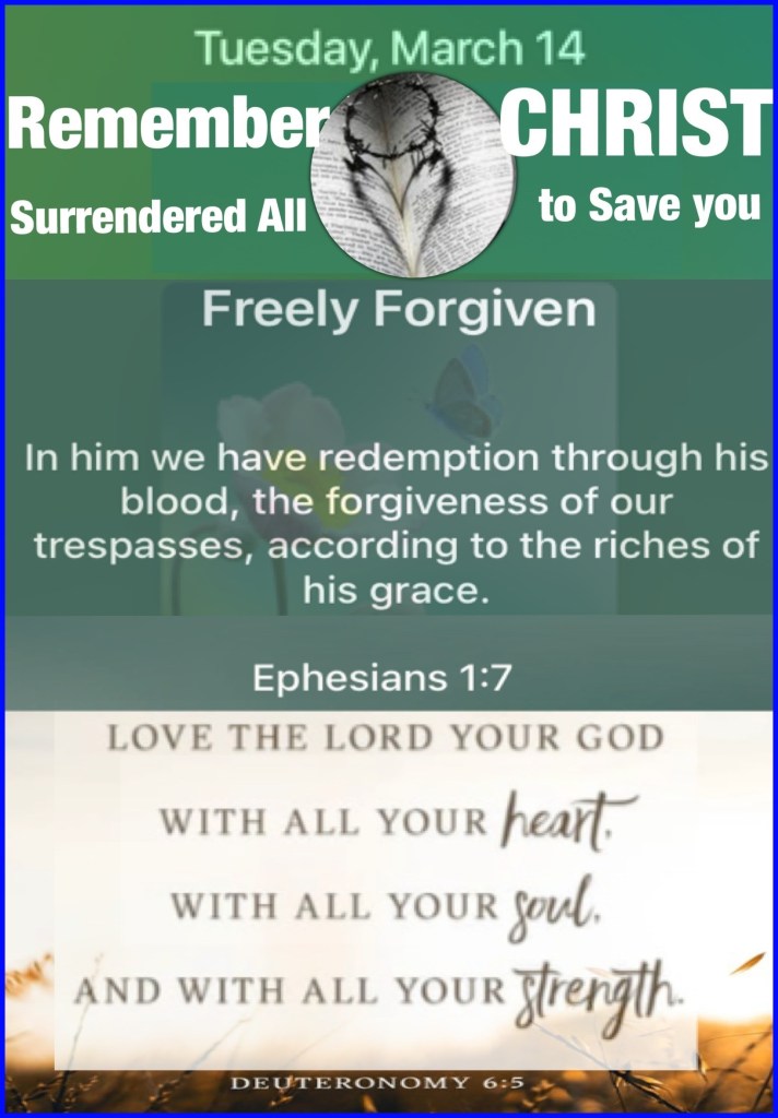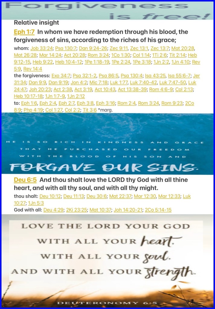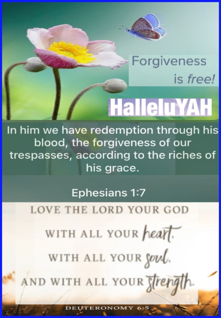 “In Him we have redemption through His blood, the forgiveness of sins, according to the riches of His grace” Ephesians 1:7 “You shall love The Lord your God with all your heart, with all your soul, and with all your strength.” Deuteronomy 6:5