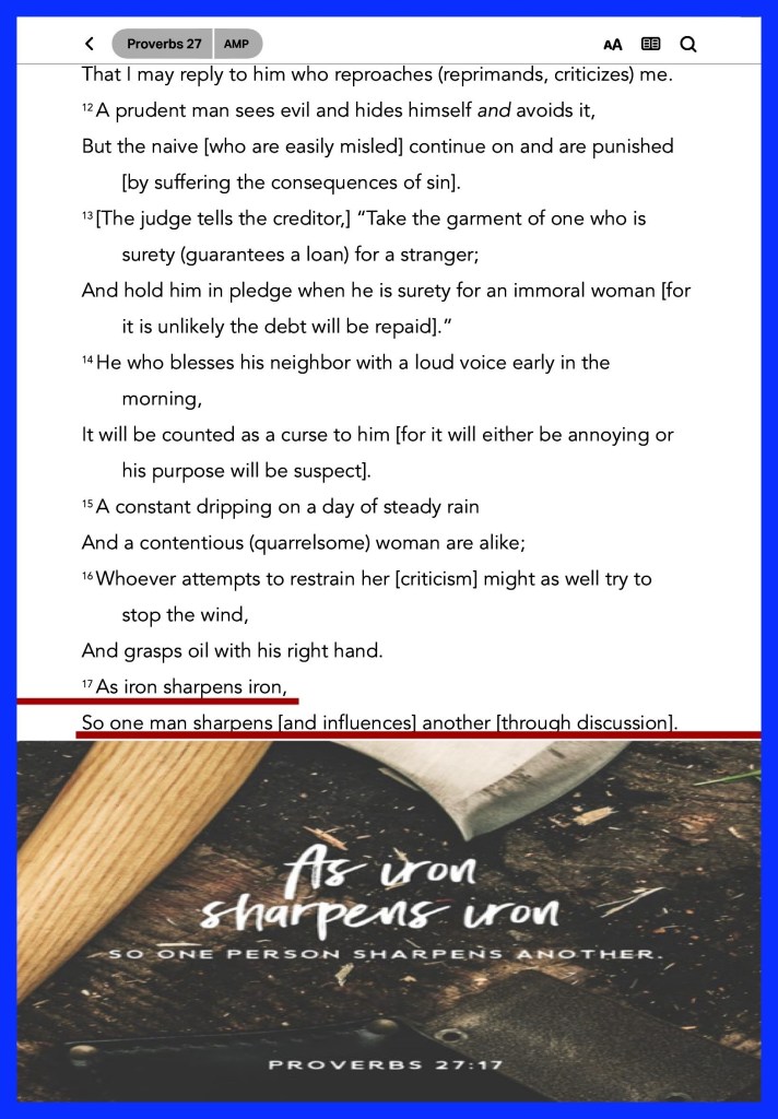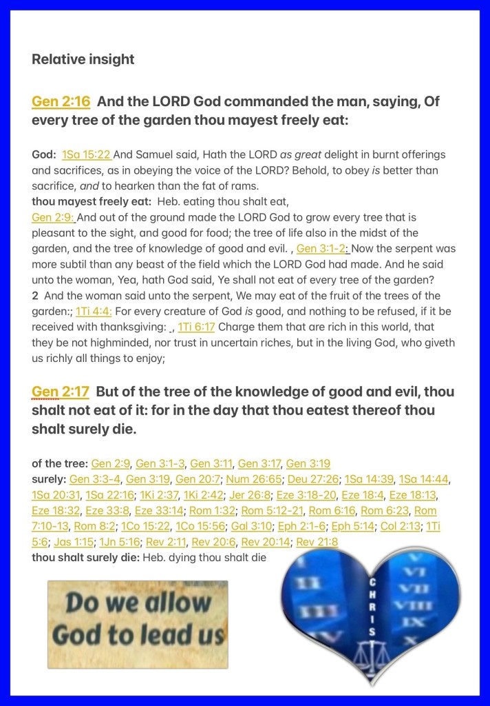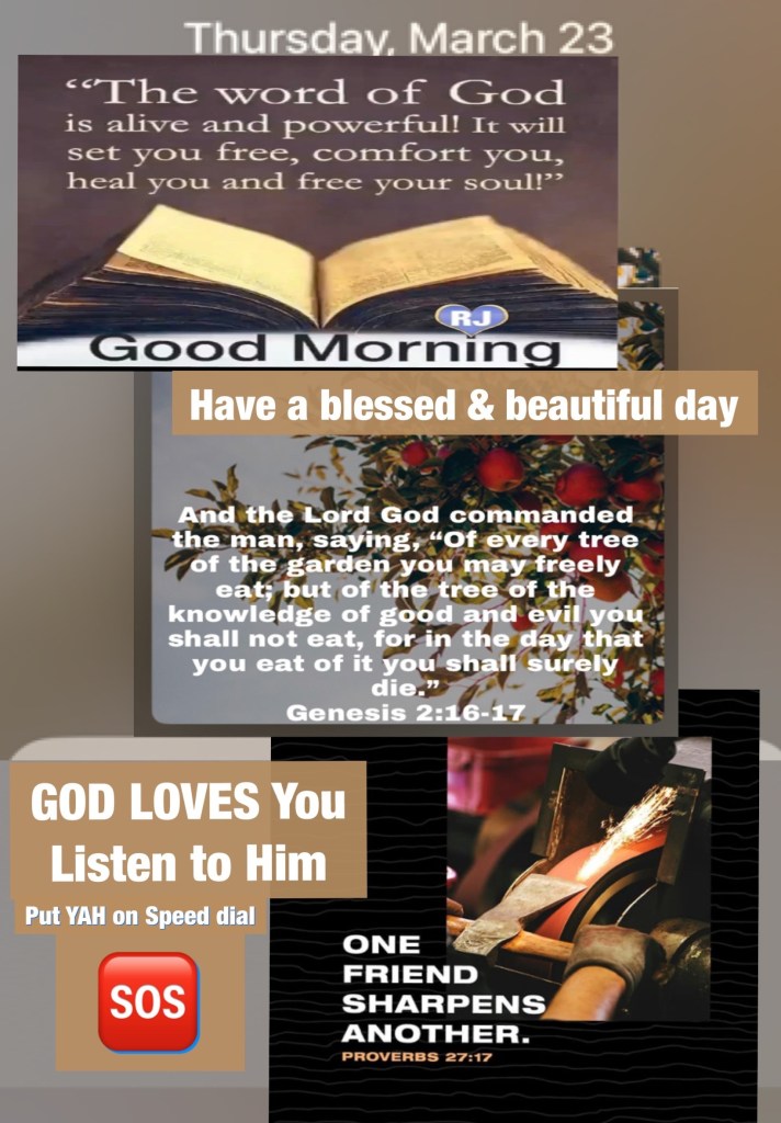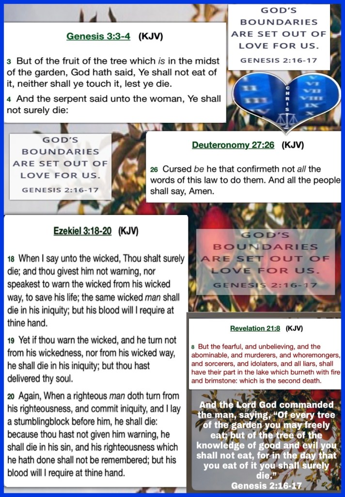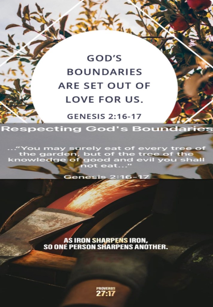 βAnd The Lord God Commanded the man, saying, βOf every tree of the garden you may freely eat; but of the tree of the knowledge of good and evil you shall not eat, for in the day that you eat of it you shall surely die.ββ Genesis 2:16-17 βAs iron sharpens iron, So a man sharpens the countenance of his friend.β Proverbs 27:17