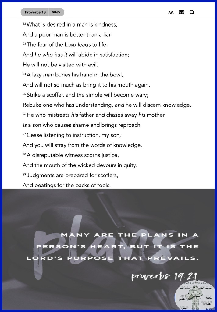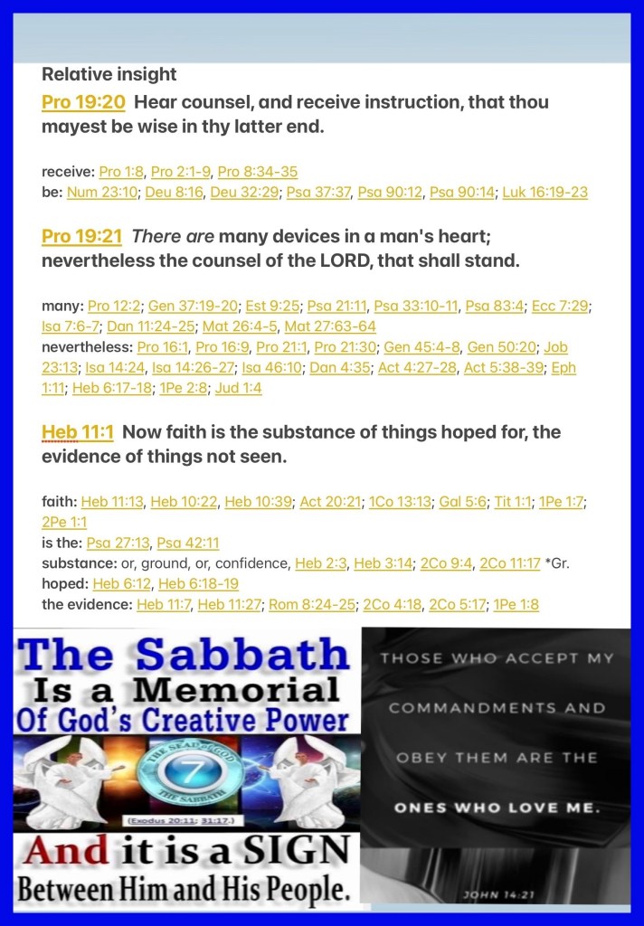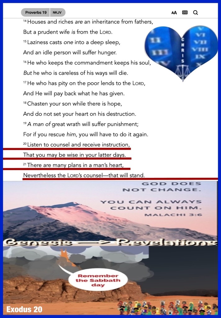 “Listen to counsel and receive instruction, That you may be wise in your latter days. There are many plans in a man’s heart, Nevertheless The Lord’s counsel—that will stand.” Proverbs 19:20-21 “Now faith is the substance of things hoped for, the evidence of things not seen.” Hebrews 11:1