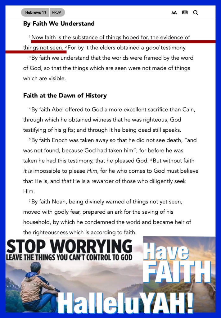JESUS did it, He can do it, He will do it again, He will do it for you. When you know that you know and you are fully reliant upon YAH, THE WORD and what He Said that’s confidence, when you believe against all odds and YAH comes through for you that’s faithful confidence. When THE RUACH HA’QUODESH reveals THE GODHEAD / LOVE you have now received The FCC, Faith in Confident Counsel The Only Counsel/ Word that Can’t fail, you see when YAH Speaks “it” is. The Word of YAH can always be trusted because His Word is Truth. HalleluYAH! Happy SABBATH BeLoved Walk Good