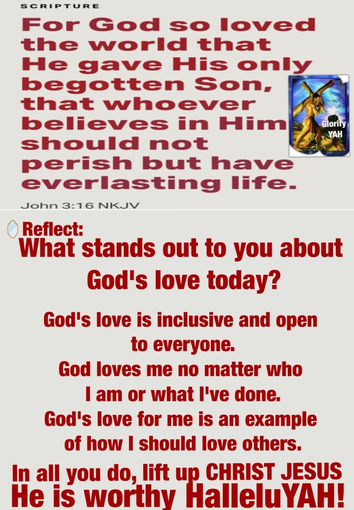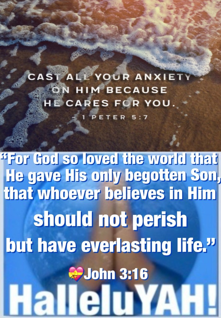 “casting all your care upon Him, for He cares for you.” I Peter 5:7 “For God so loved the world that He gave His only begotten Son, that whoever believes in Him should not perish but have everlasting life.” John 3:16