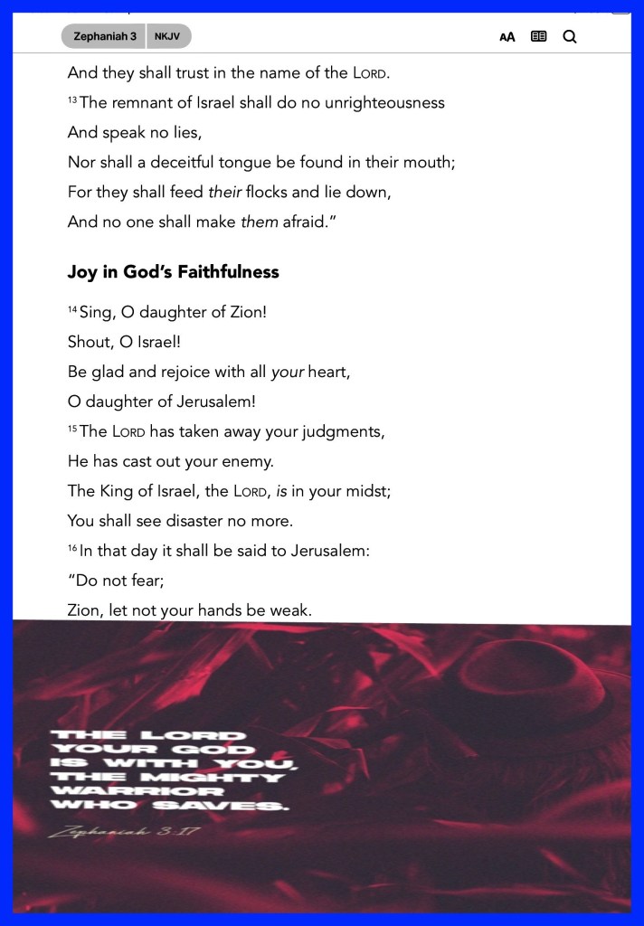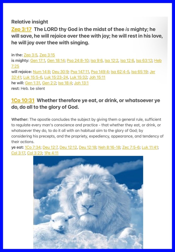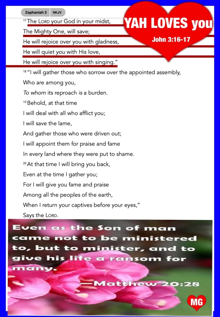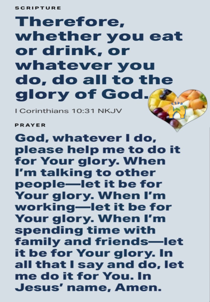 “The Lord your God in your midst, The Mighty One, will save; He will rejoice over you with gladness, He will quiet you with His love, He will rejoice over you with singing.””Zephaniah 3:17 “Therefore, whether you eat or drink, or whatever you do, do all to the glory of God.” I Corinthians 10:31