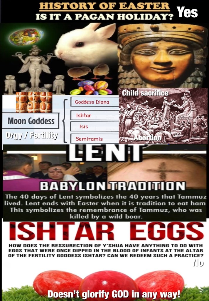 So much of our Christian behaviors have been hijacked or twisted, itβs hard not to fall for deception, thatβs why YAH gave us His WORD. Thereβs only ever 2 voices God and the enemy (counterfeit), 2 Wars 1 enemy/ final lockdown crisis / Ishtar or Not Easter (Orthodox?) the changing faces of the counterfeit β οΈ Worship of any other thing (outside of The Godhead) is idolatry and makes a mockery of Christ. God loves you True Knowledge is Holy Ghost Power to walk good. HalleluYAH!