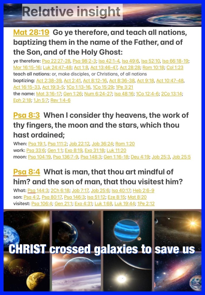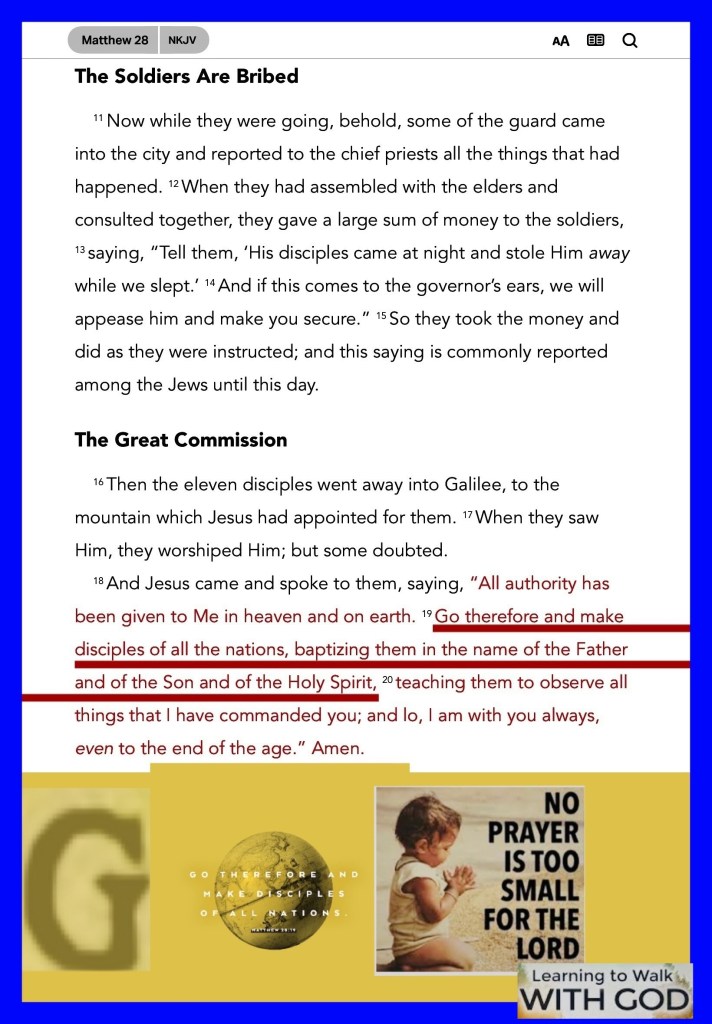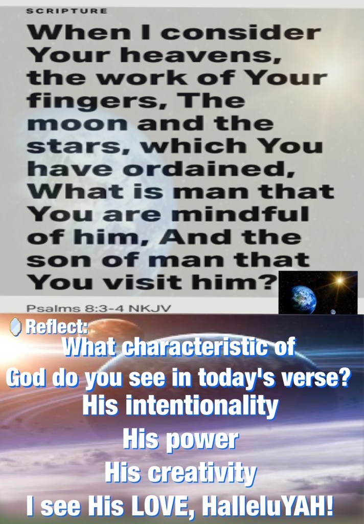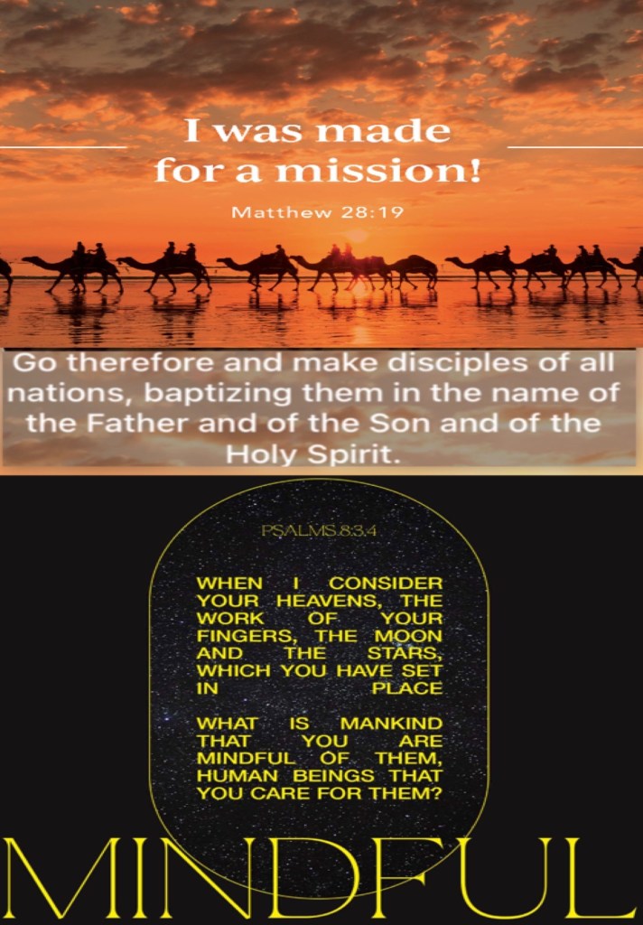 “Go therefore and make disciples of all the nations, baptizing them in The Name of The Father and of The Son and of The Holy Spirit,” Matthew 28:19 “When I consider Your heavens, the work of Your fingers, The moon and the stars, which You have ordained, What is man that You are mindful of him, And the son of man that You visit him?” Psalms 8:3-4