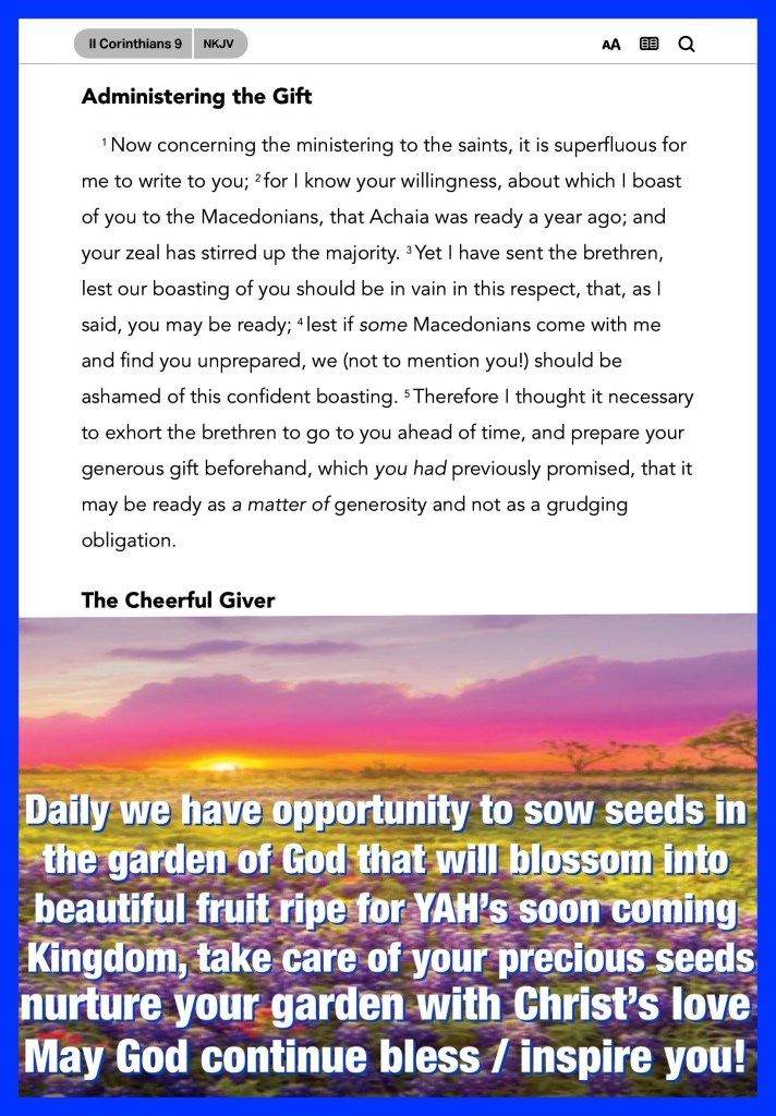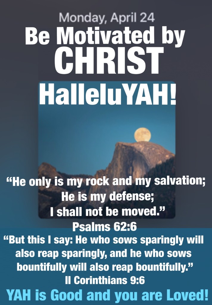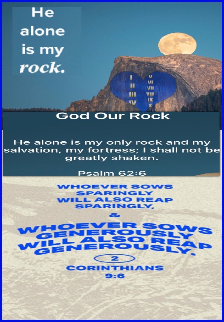 “He only is my rock and my salvation; He is my defense; I shall not be moved.”Psalms 62:6 “But this I say: He who sows sparingly will also reap sparingly, and he who sows bountifully will also reap bountifully.” II Corinthians 9:6