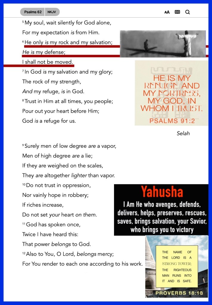 Psalms 62:2 He only is my rock and my salvation; he is my defence; I shall not be greatly moved.