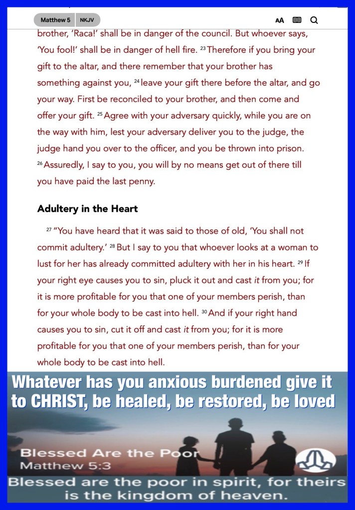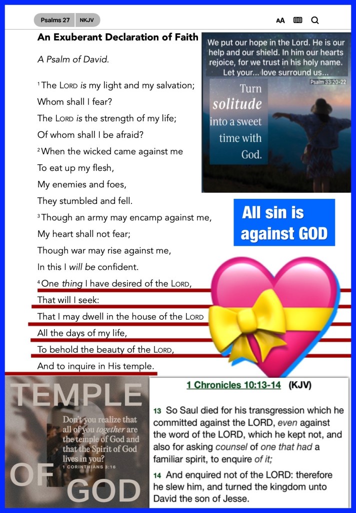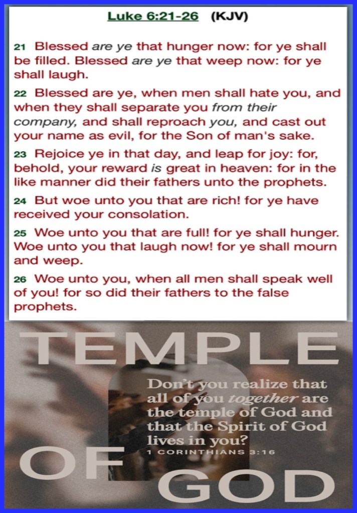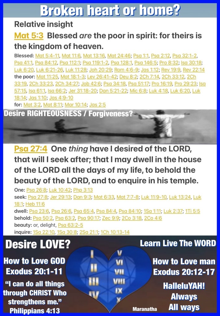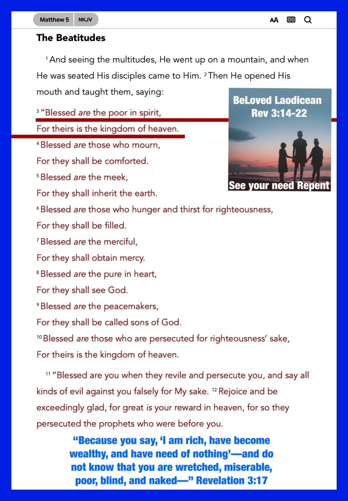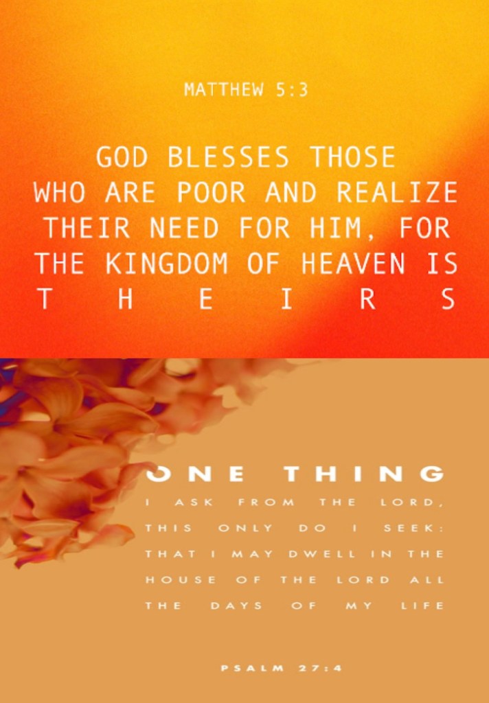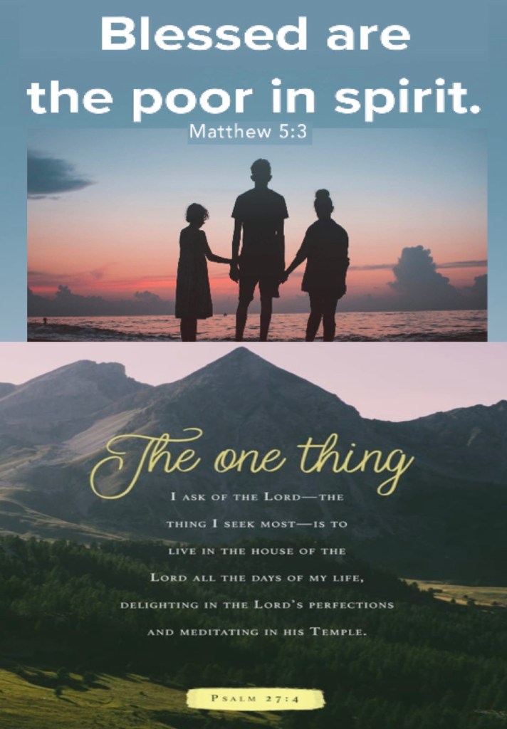 ““Blessed are the poor in spirit, For theirs is The Kingdom of Heaven.” Matthew 5:3 “One thing I have desired of The Lord, That will I seek: That I may dwell in the house of The Lord All the days of my life, To behold the beauty of The Lord, And to inquire in His Temple.” Psalms 27:4