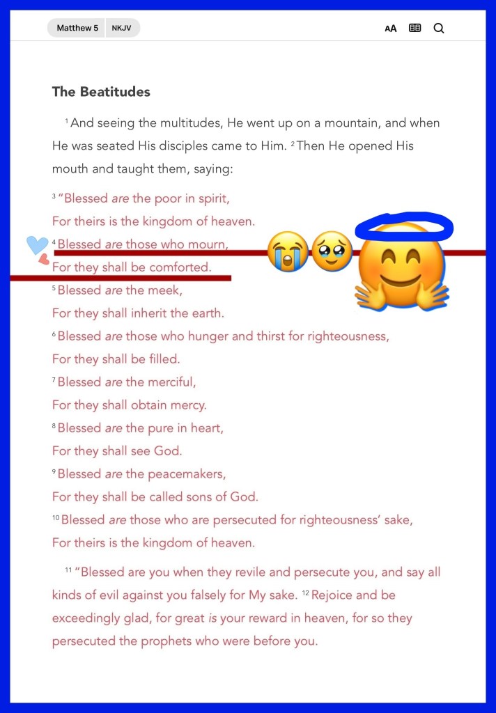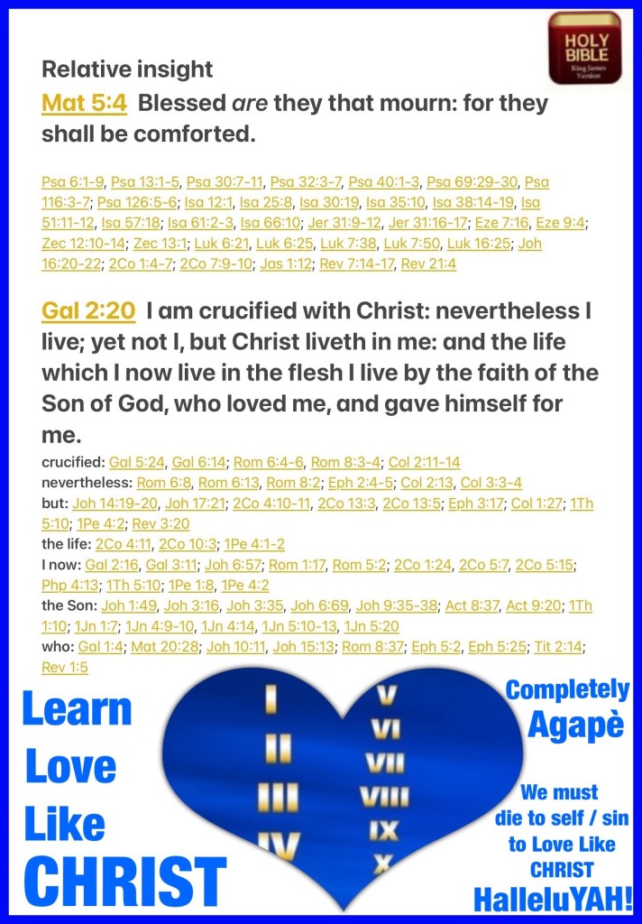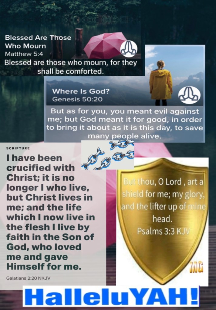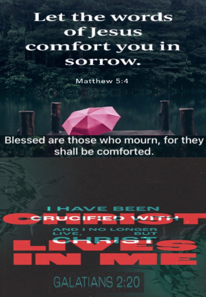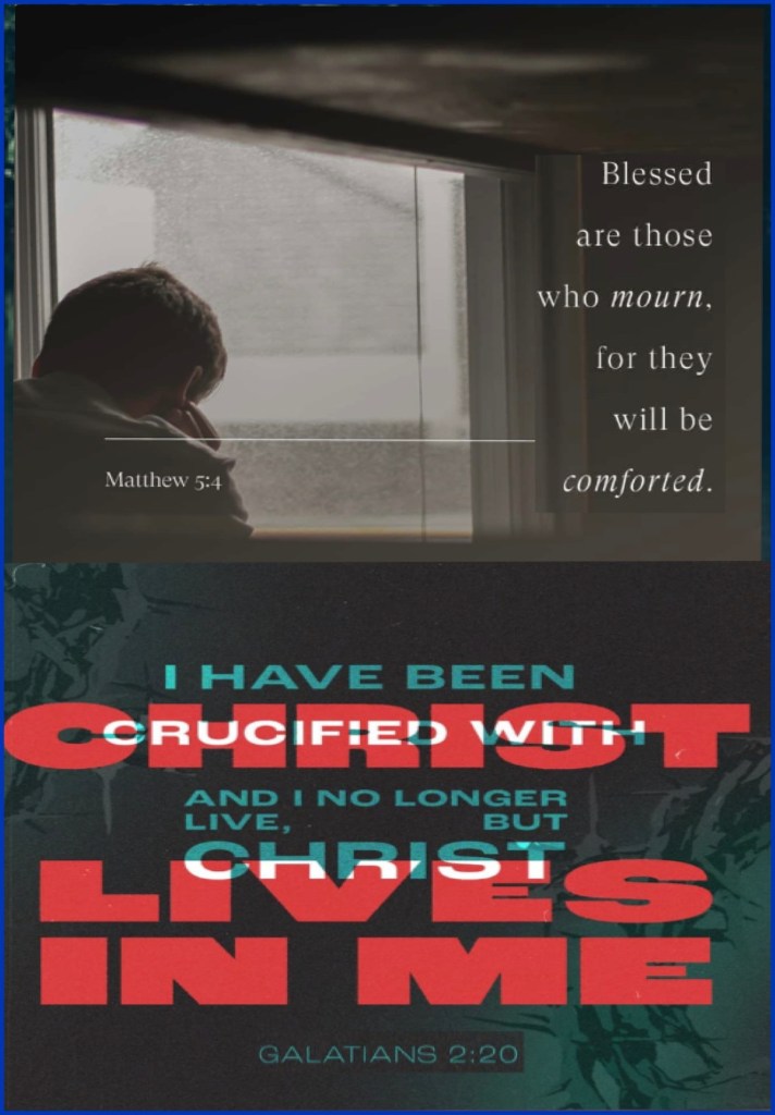 “Blessed are those who mourn, For they shall be comforted.” Matthew 5:4 “I have been crucified with Christ; it is no longer I who live, but Christ lives in me; and the life which I now live in the flesh I live by faith in the Son of God, who loved me and gave Himself for me.” Galatians 2:20