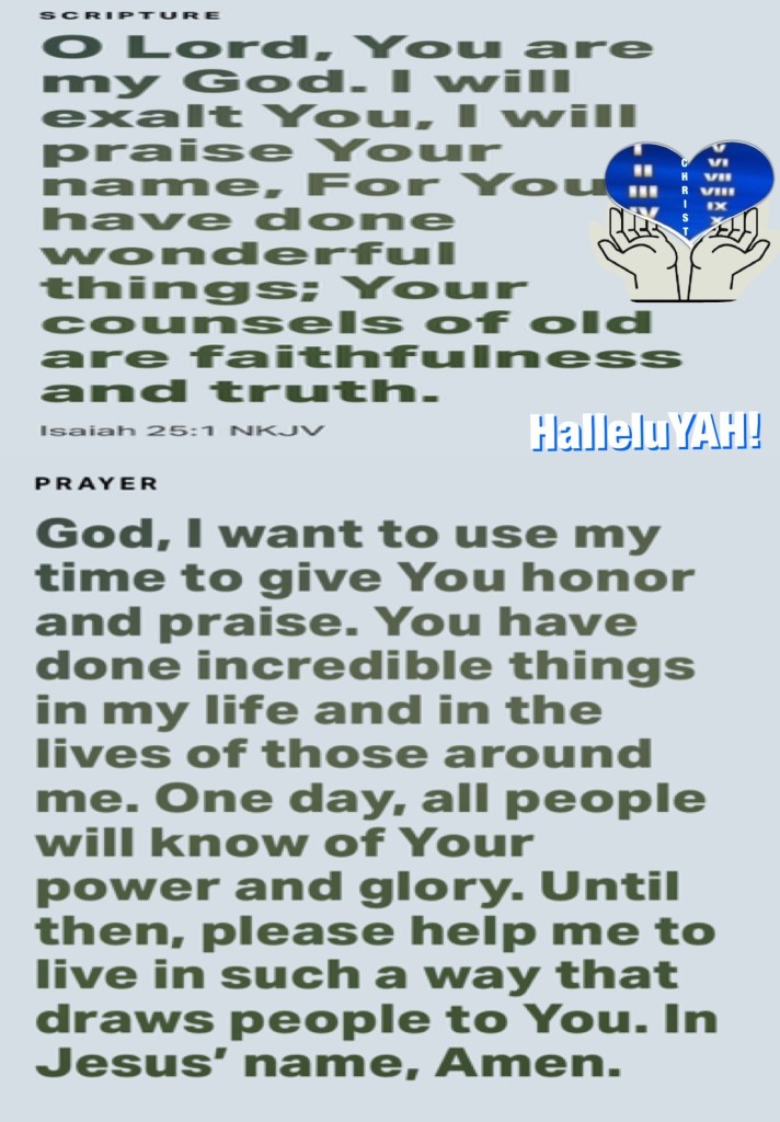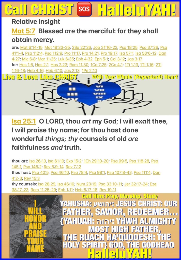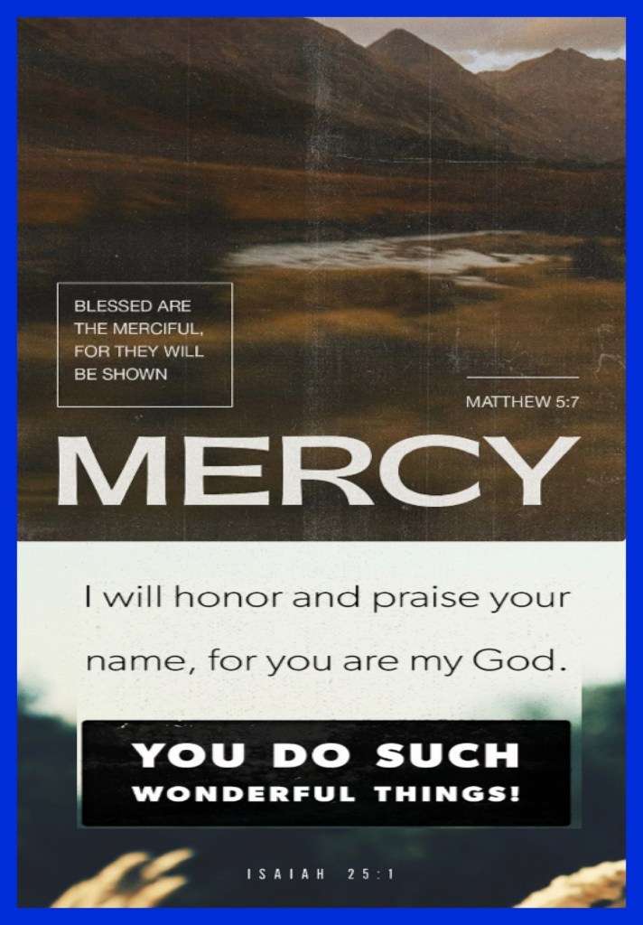 “Blessed are the merciful, For they shall obtain mercy.” Matthew 5:7 “O Lord, You are my God. I will exalt You, I will praise Your name, For You have done wonderful things; Your counsels of old are faithfulness and truth.” Isaiah 25:1