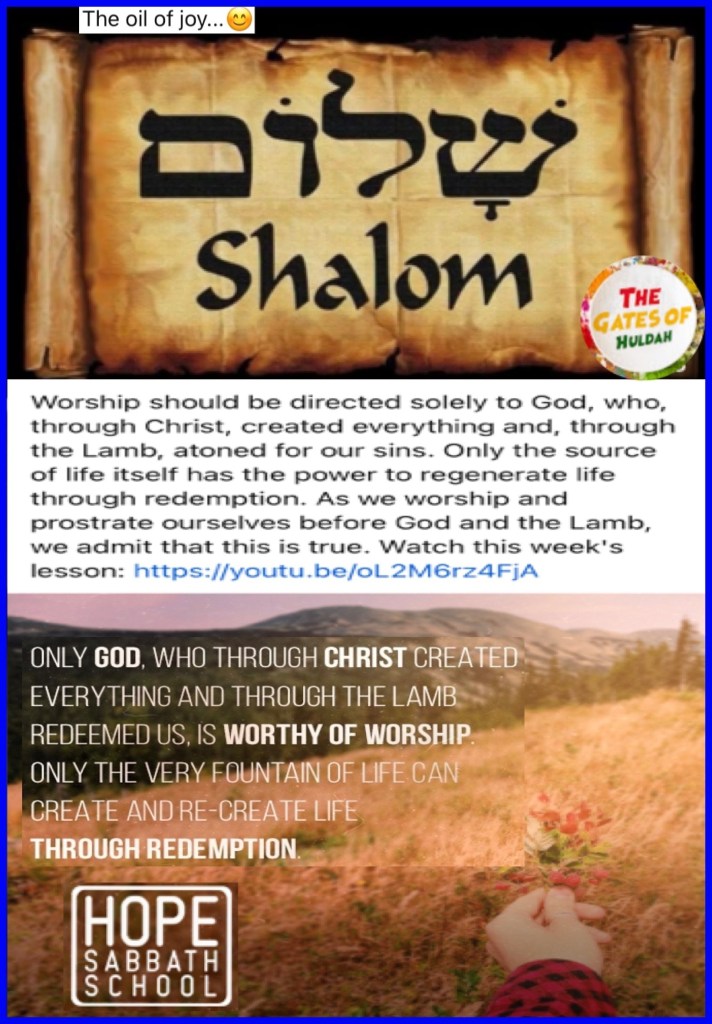 Happy SABBATH Beloved child of YAH; my hearts prayer today is that we see more clearly our Heavenly FATHERβs Face: Character: Mission: Message: LOVEβ¦ may we welcome THE RUACHβs Blessing: Filling: Teaching thereβs many lessons from The Cross the primary: This is the place / manner which our Savior exchanged His Life to Ransom ours to fulfill His Law: Pay Itβs Price and Give us Salvation. In this one act CHRIST Loved / Honored/ Glorified His FATHER (Exodus 20:1-11) and Restored Relationship of His children: husbands: wives: brothers and sisters (Exodus 20:12-17) He pulled together the breaching of The Tablets of His Law: His Heart: His Character. At the foot of The Cross is surrender of self and where we can lay all our burdens and put to death sin, to The Glory Of YAH In CHRIST. May get this before Itβs too late β° FATHER YAH Please donβt let us die in ignorance, come into our hearts today, in CHRIST JESUS Name YAHUSHA HAβMASSIACH I Pray. Amen