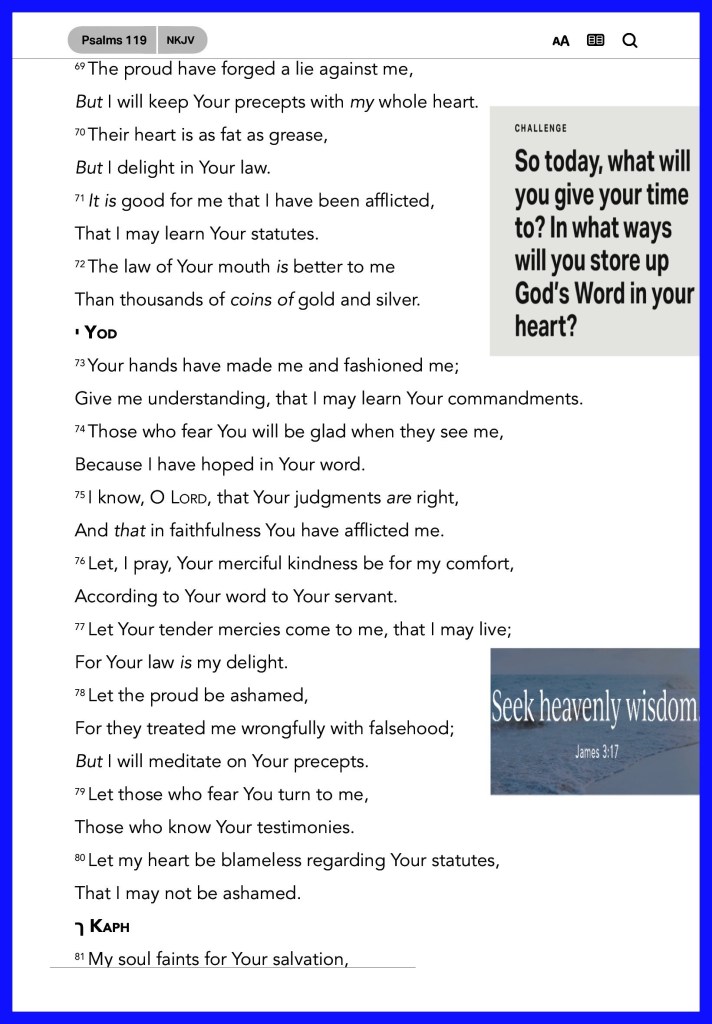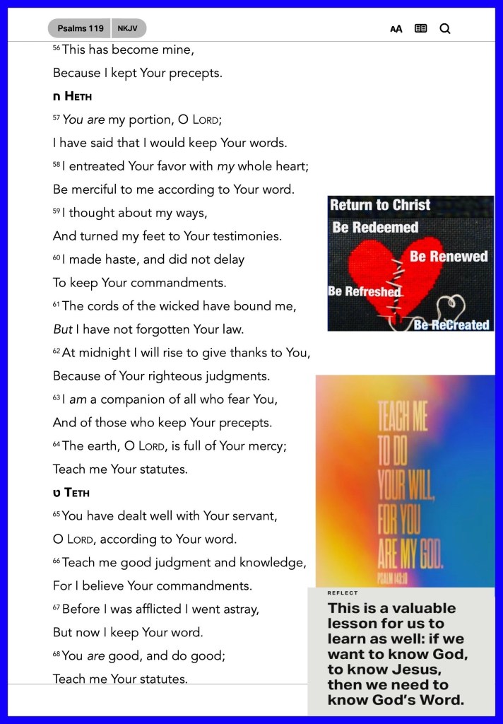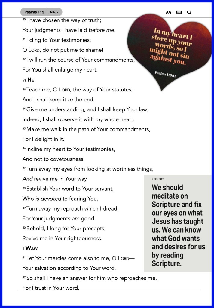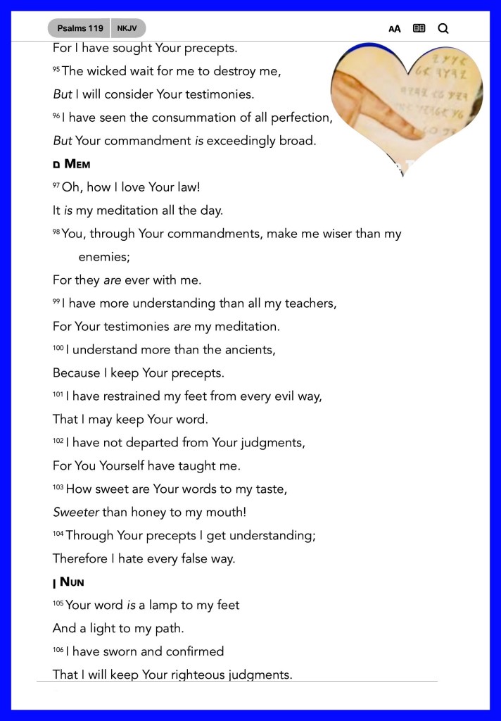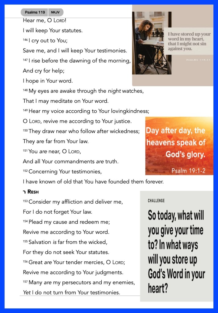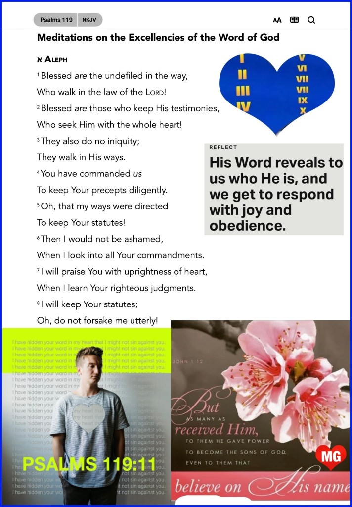 “The heavens declare the glory of God; And the firmament shows His handiwork. Day unto day utters speech, And night unto night reveals knowledge.” Psalms 19:1-2 “Your word I have hidden in my heart, That I might not sin against You.” Psalms 119:11