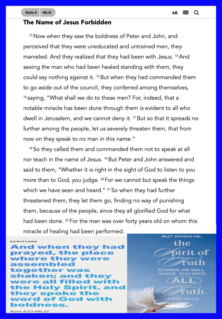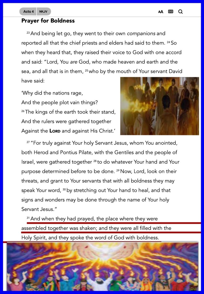 “in Whom you also are being built together for a dwelling place of GOD in The SPIRIT.” Ephesians 2:22 “And when they had prayed, the place where they were assembled together was shaken; and they were all filled with The HOLY SPIRIT, and they spoke The WORD of GOD with boldness.” Acts 4:31