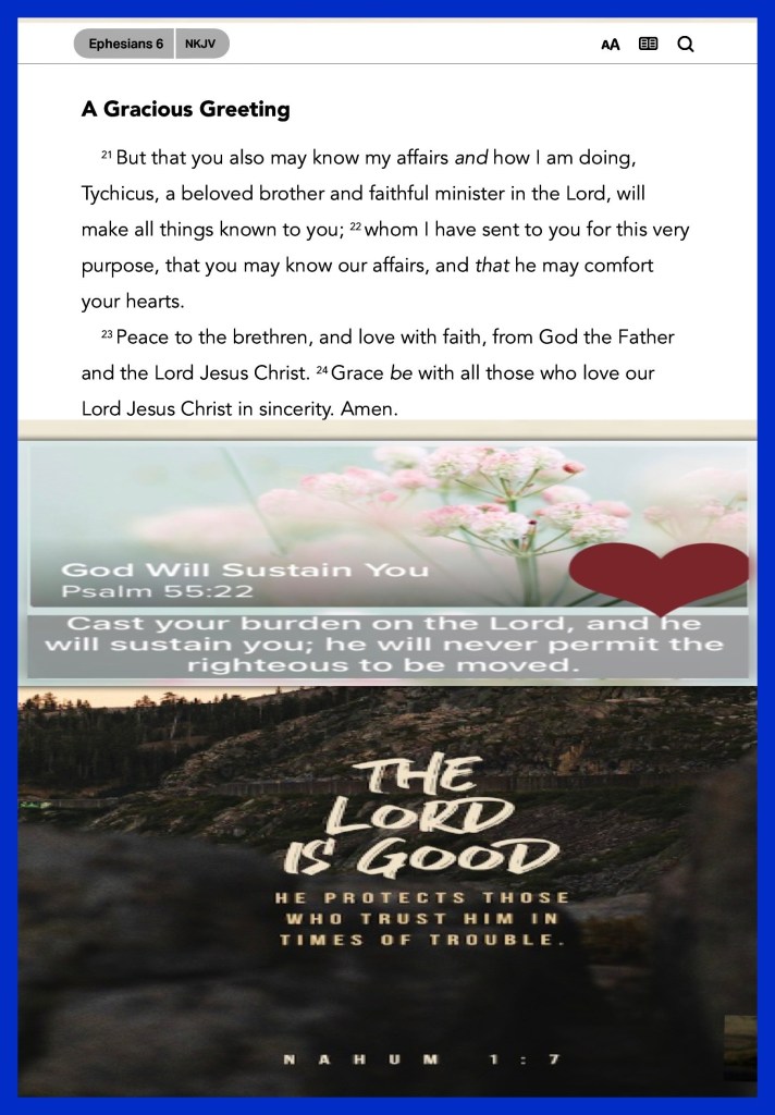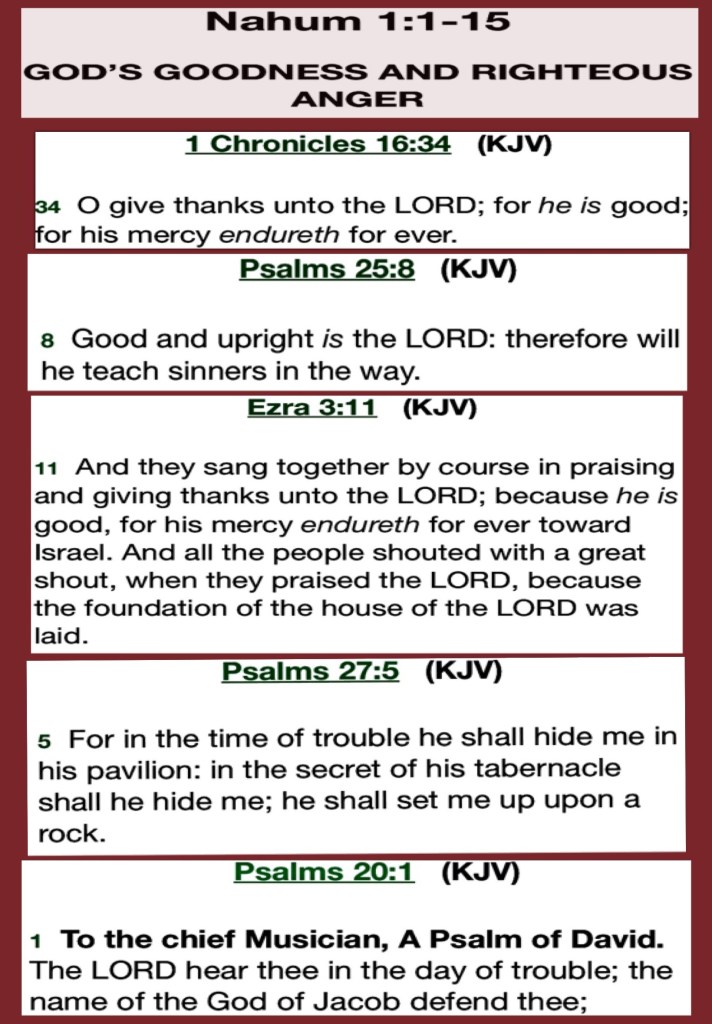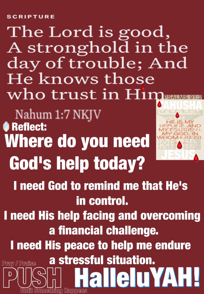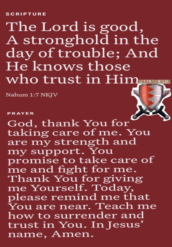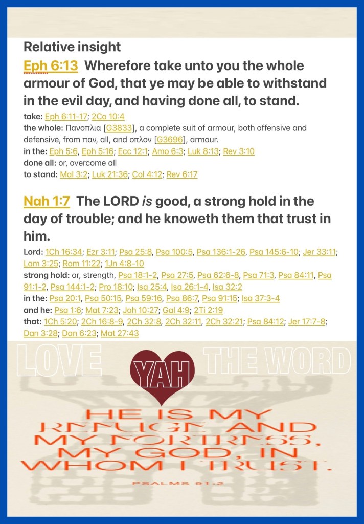 βTherefore take up the whole armor of God, that you may be able to withstand in the evil day, and having done all, to stand.β Ephesians 6:13 βThe Lord is good, A stronghold in the day of trouble; And He knows those who trust in Him.β Nahum 1:7