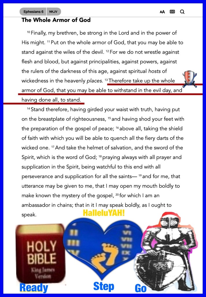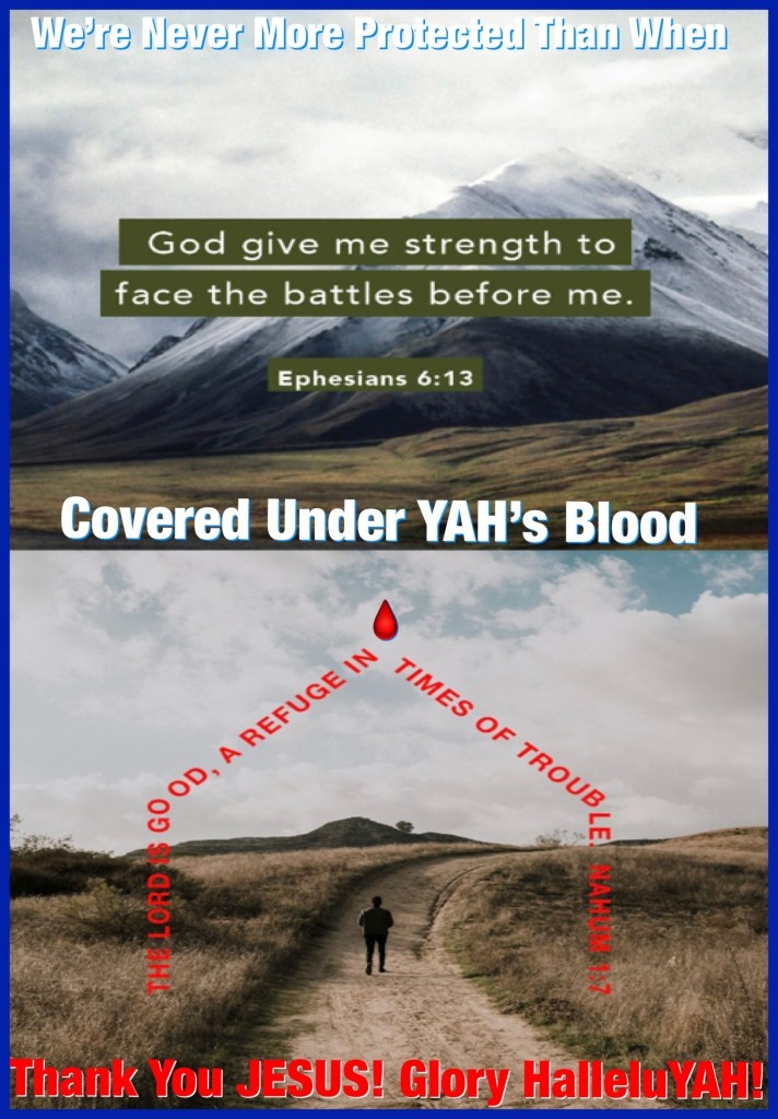 Beloved I know itβs quite possible that some of us are still not convinced that we are living in βthe end times: close of probation: the meantimeβ, moreover with all of our plans and what we have to βdoβ it feels inconvenient. Okay we see an increase in the signs, wonders: good / bad, families churches people gone awry, divisions, apostasies, wicked people literally trying to take over the world, Godless behaviors and Lawlessnessβ¦ all of this is prophetic, YAH Said and weβve been warned. Thereβs no covering help deliverance like that freely and lovingly offered by YAH. The Scriptures Received Allows THE HOLY SPIRIT To Cover Dress And Protect You and have you Battle Ready. This is no ordinary fight, itβs on levels and yes you may die but weβre only Promised Victory In CHRIST. So I lovingly and respectfully request we strengthen that relationship before all else for the Win in every area. GOD bless, keep and seal you and yours for Eternity. Walk Good, Stand Firm, Armor Up when CHRIST Is your Stronghold and weβre wrapped up in LOVE weβre destined to Glorify YAH! ππ½