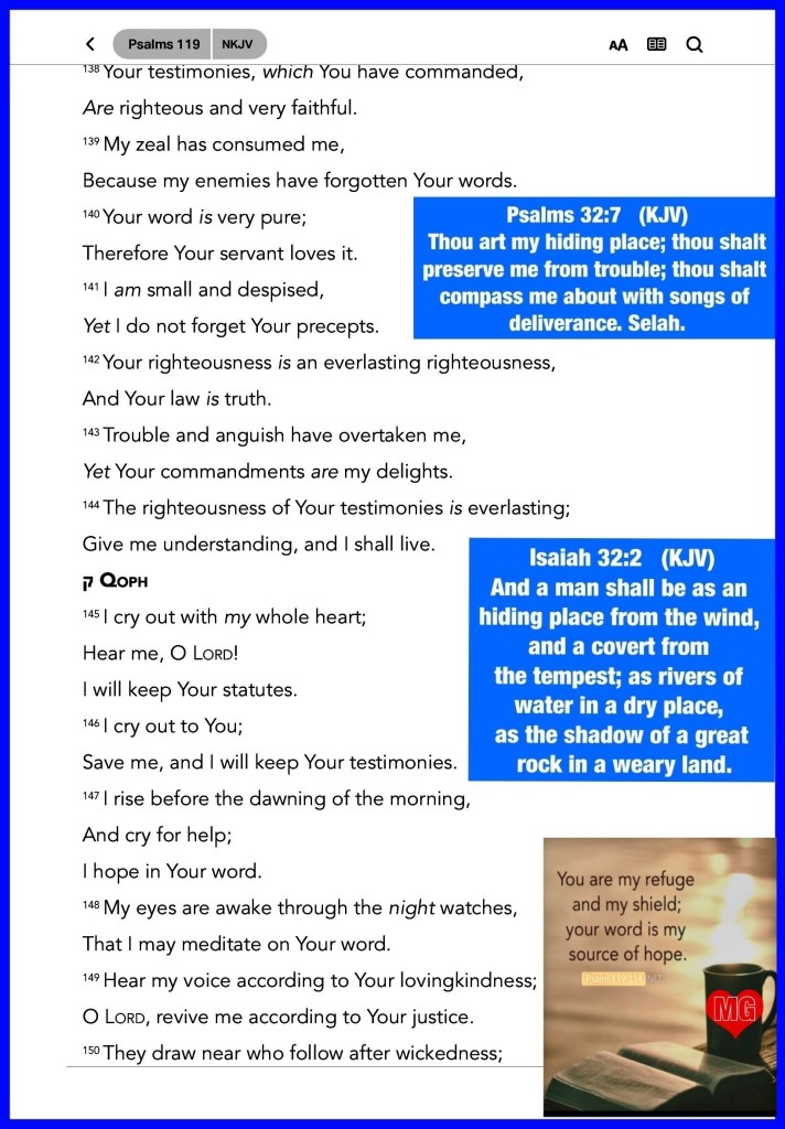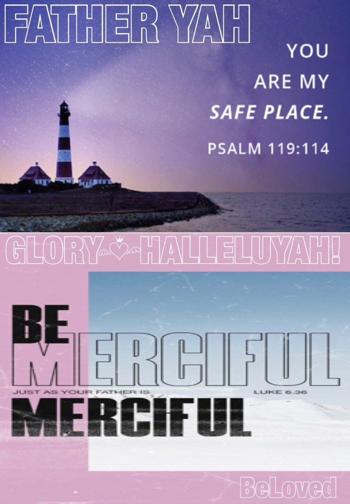 “You are my hiding place and my shield; I hope in Your word.” Psalms 119:114 “Therefore be merciful, just as your Father also is merciful.” Luke 6:36