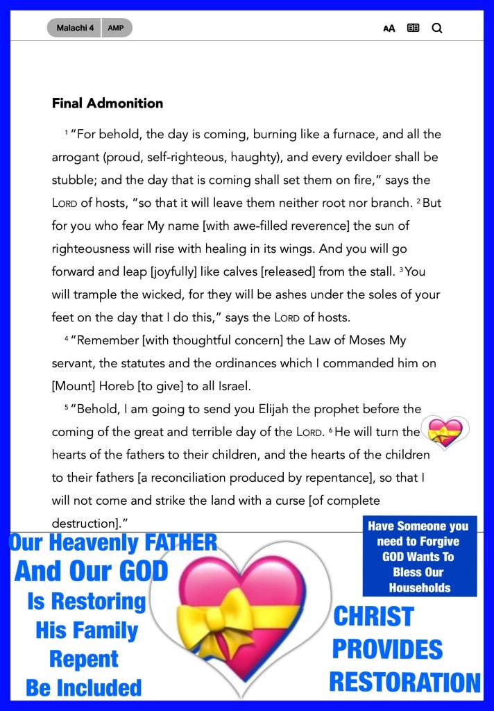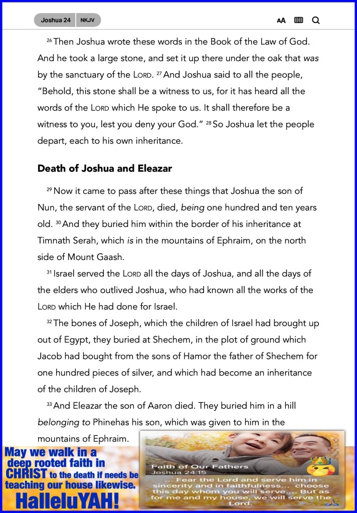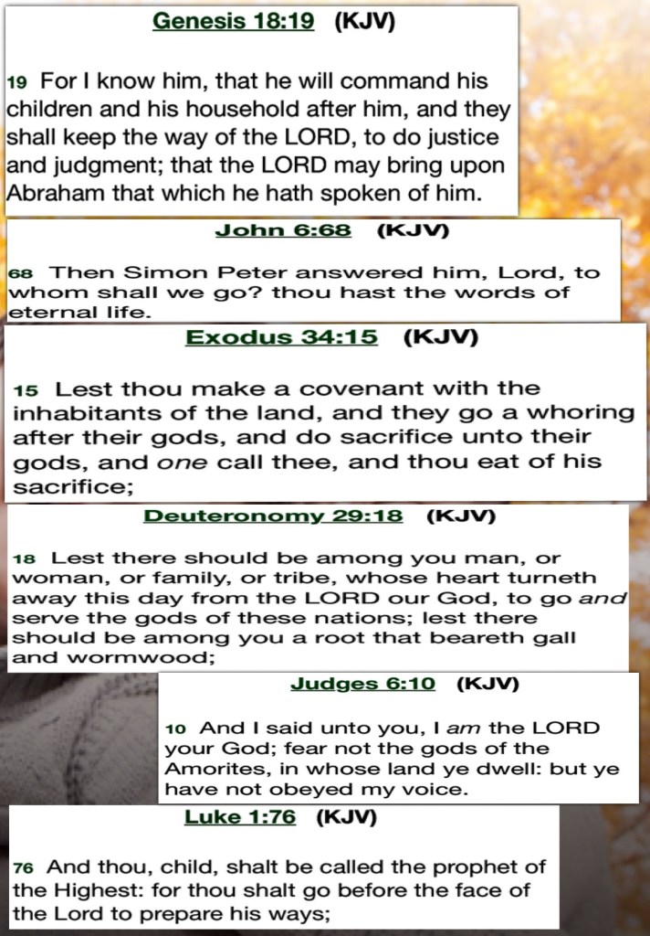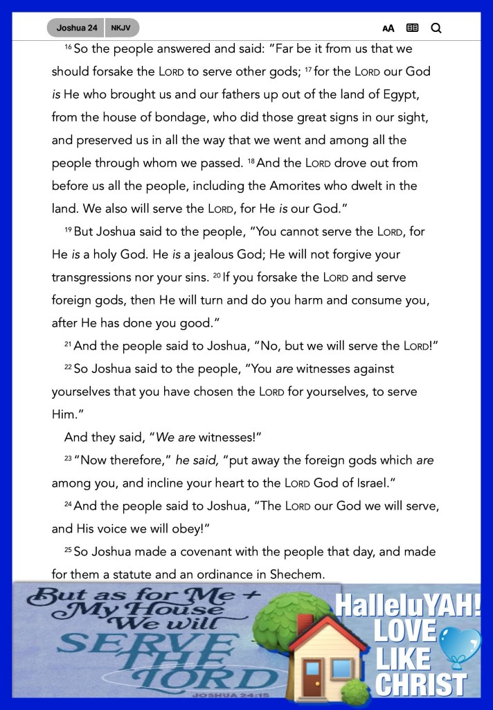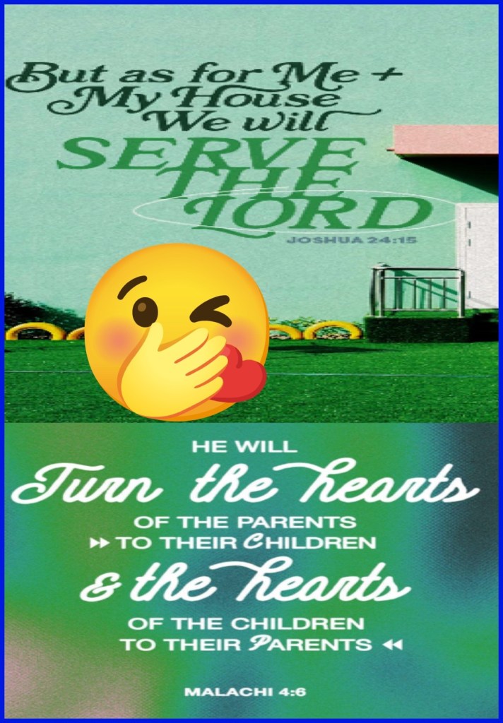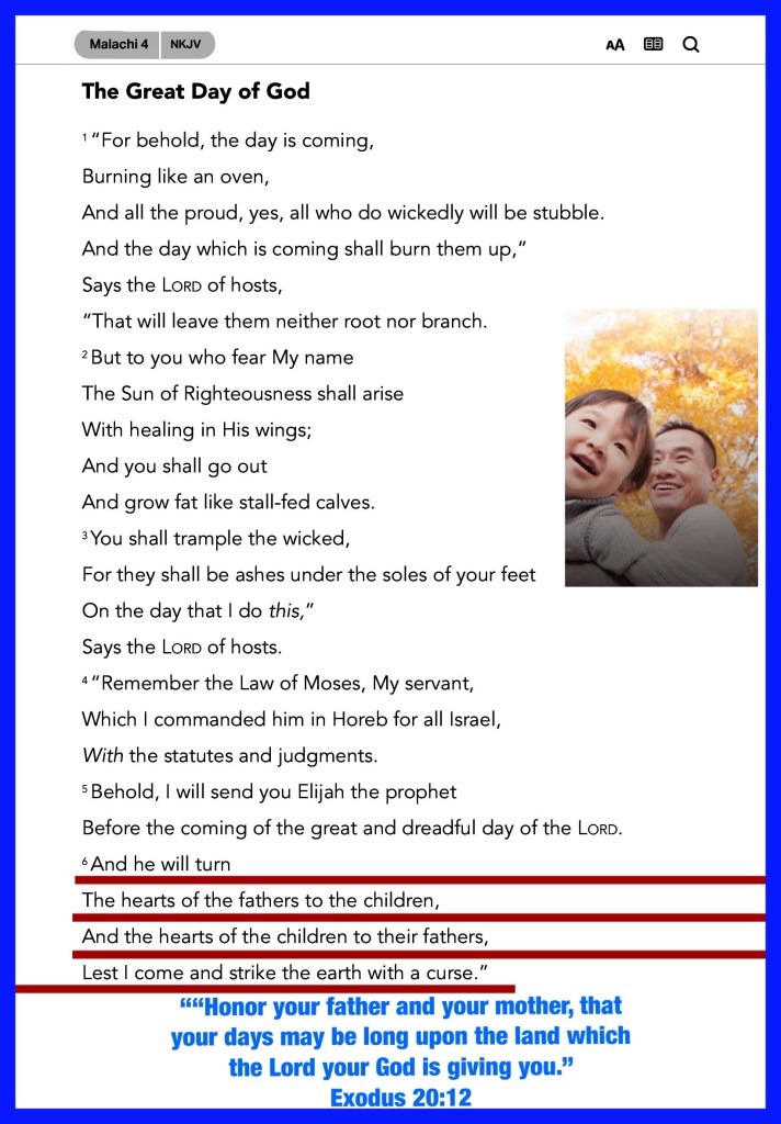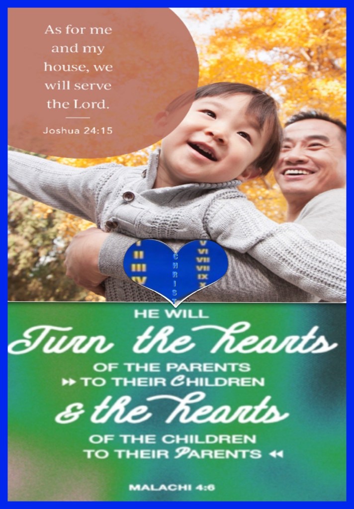 “And if it seems evil to you to serve the Lord, choose for yourselves this day whom you will serve, whether the gods which your fathers served that were on the other side of the River, or the gods of the Amorites, in whose land you dwell. But as for me and my house, we will serve the Lord.”” Joshua 24:15 “And he will turn The hearts of the fathers to the children, And the hearts of the children to their fathers, Lest I come and strike the earth with a curse.”” Malachi 4:6
