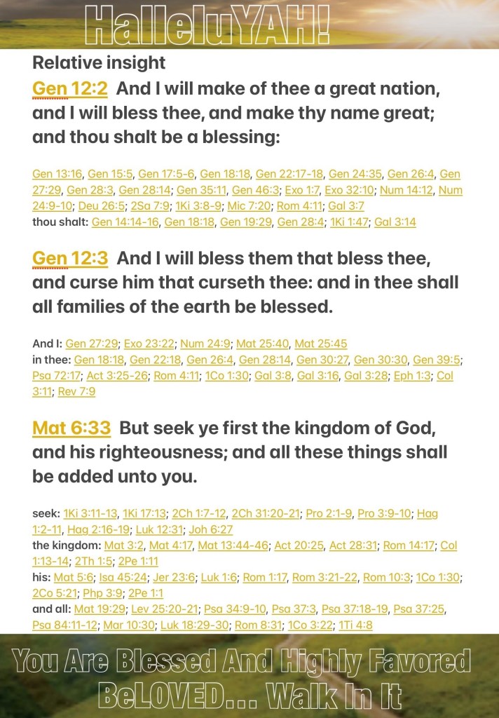 “And I will make you a great nation, And I will bless you [abundantly], And make your name great (exalted, distinguished); And you shall be a blessing [a source of great good to others]; And I will bless (do good for, benefit) those who bless you, And I will curse [that is, subject to My wrath and judgment] the one who curses (despises, dishonors, has contempt for) you. And in you all the families (nations) of the earth will be blessed.”” Genesis 12:2-3 AMP “But first and most importantly seek (aim at, strive after) His kingdom and His righteousness [His way of doing and being right—the attitude and character of God], and all these things will be given to you also.” Matthew 6:33 AMP ❤️🙏🏽❤️