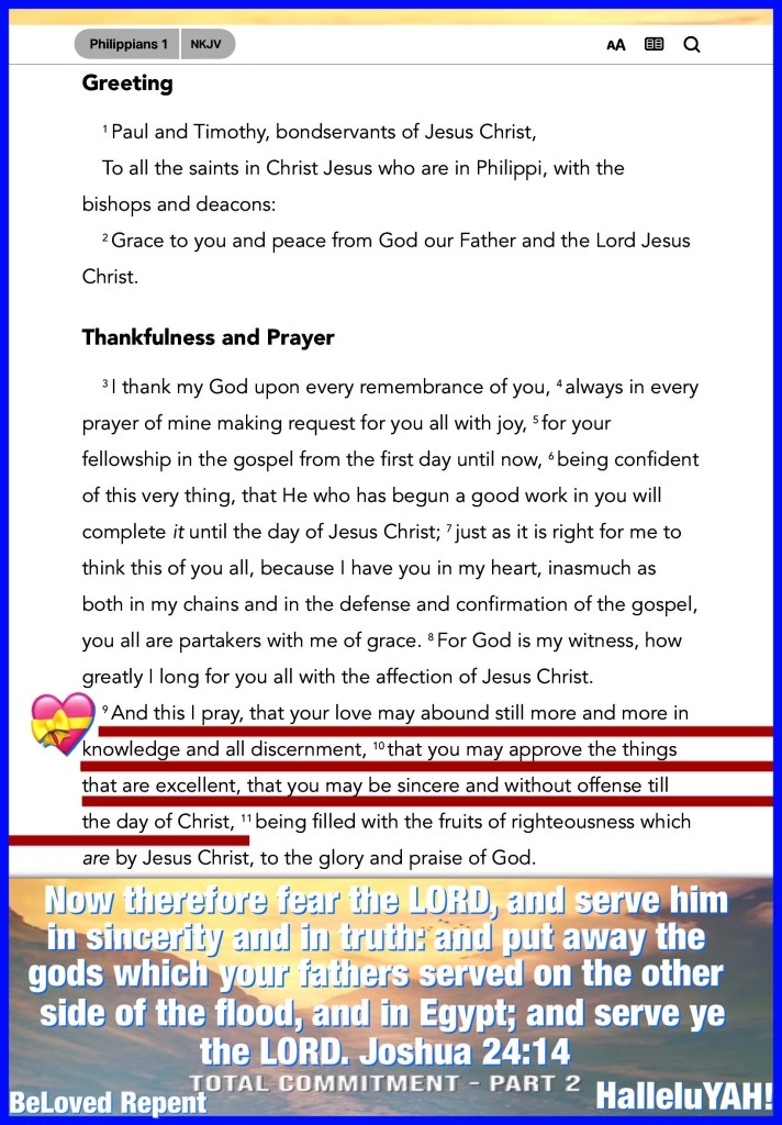 Do you Believe in The Awesomeness of YAH? Our lives are just snippets of a greater story from Genesis through Revelation we all are a part of this epic story and if you’re not sure prayerfully review your own life and allow YAH’s HOLY SPIRIT to reveal Himself, His LOVE and what He’s Doing/ Done; we’re living excerpt of how GOD is attempting to restore His creation unto Himself. The Library of HEAVEN has record and I pray *Philippians 1:9-10 be the reality for all of us, in the Name of CHRIST JESUS: YAHUSHA HA’MASSIACH our AWESOME GOD. Live in CHRIST LOVE BeLoved Be Blessed. HalleluYAH! Walk Good.