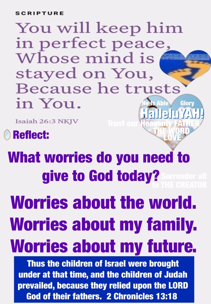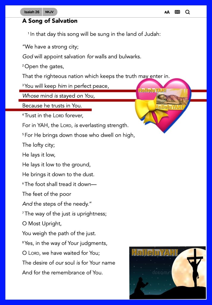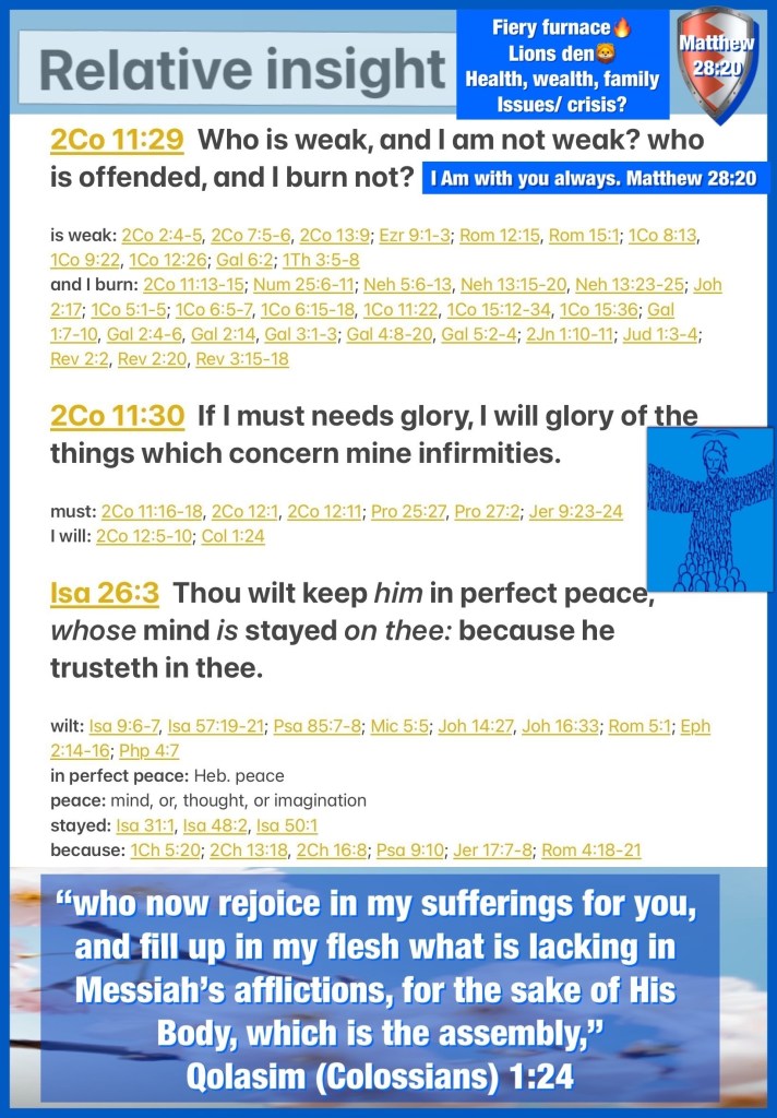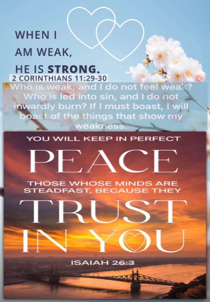 “Who is weak, and I am not weak? Who is made to stumble, and I do not burn with indignation? If I must boast, I will boast in the things which concern my infirmity.”II Corinthians 11:29-30 “You will keep him in perfect peace, Whose mind is stayed on You, Because he trusts in You.” Isaiah 26:3