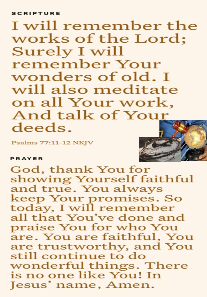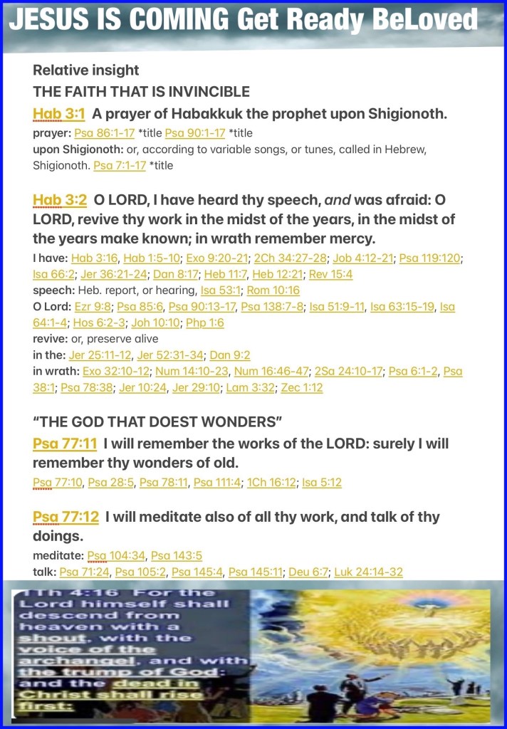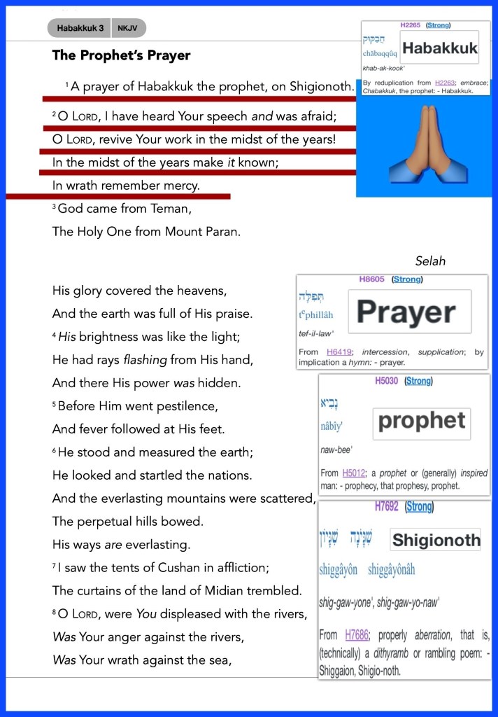 “A prayer of Habakkuk the prophet, on Shigionoth. O Lord, I have heard Your speech and was afraid; O Lord, revive Your work in the midst of the years! In the midst of the years make it known; In wrath remember mercy.” Habakkuk 3:1-2 “I will remember the works of the Lord; Surely I will remember Your wonders of old. I will also meditate on all Your work, And talk of Your deeds.” Psalms 77:11-12