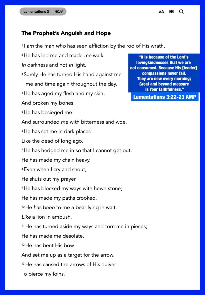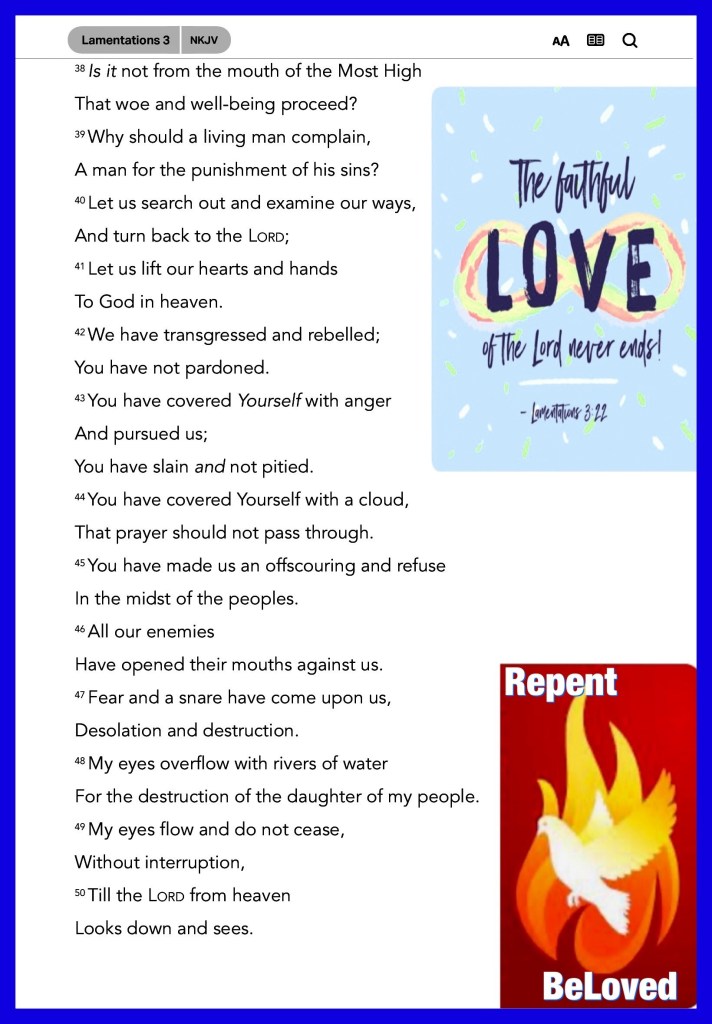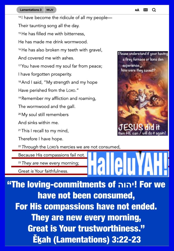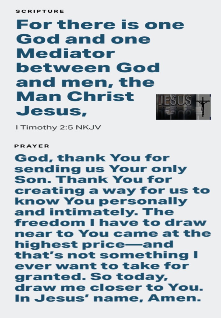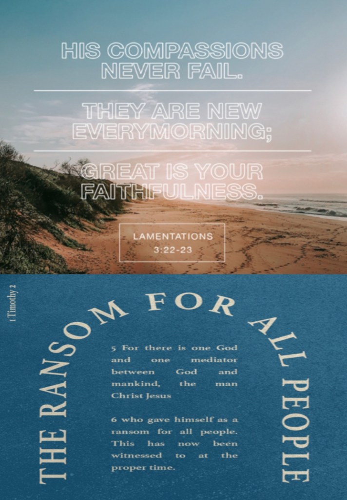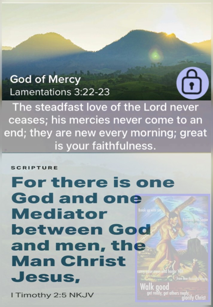 “Through the Lord’s mercies we are not consumed, Because His compassions fail not. They are new every morning; Great is Your faithfulness.” Lamentations 3:22-23 “For there is one God and one Mediator between God and men, the Man Christ Jesus,” I Timothy 2:5