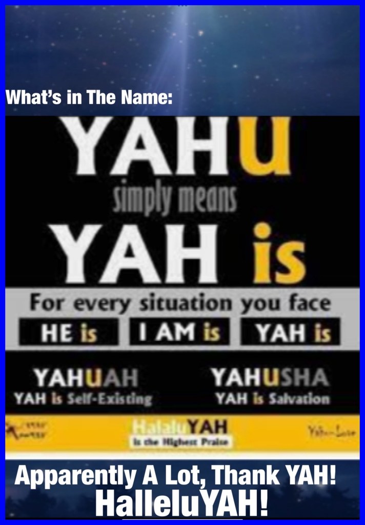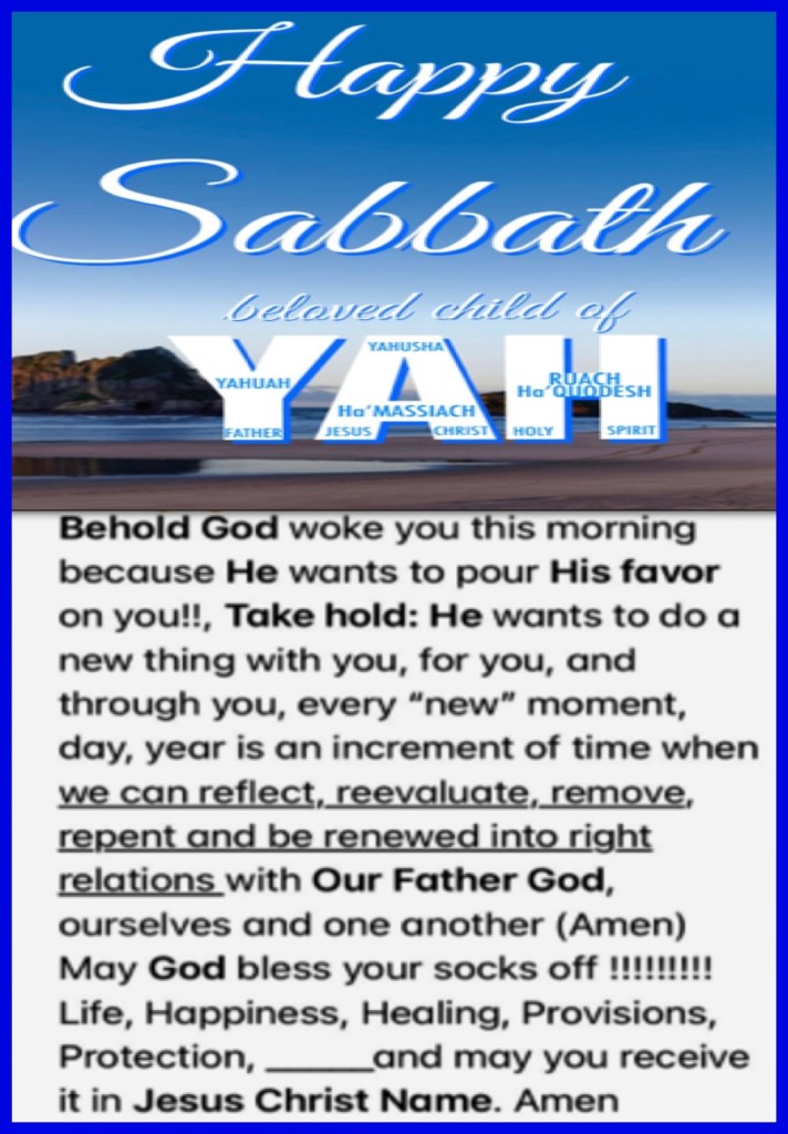 A Sabbath Review Of GOD’S Mercies (Count your blessings) Reflect Review Refrain; as a child when we “opened Sabbath” we had family worship during which we would Reflect on the goodness of GOD, Review the last few days (7…) testify: counting our individual blessings “what we were Thankful for or ways we witnessed GOD moving in our lives”, real gratitude leads into a heartfelt Refrain of hearty HalleluYAH!’s. This doesn’t have to be relegated to a weekly assessment, I believe YAH Is Always On The Job, so as often as we pray practice reaching out in Praise for the everyday miracles try, take note, say Thank You sing HalleluYAH because we are Loved, Blessed, Highly Favored by YAHUSHA: יהושע: JESUS CHRIST: OUR FATHER , {YAHUAH: יהוה: ALMIGHTY MOST HIGH FATHER , RUACH HA’QUODESH: HOLY SPIRIT} GOD, THE GODHEAD. THEY’RE Known by many Names most identify functions my personal preference based on my relationship experience is FATHER, Wonderful Savior, my Deliverer … beloved names matter the real question is (Matthew 16:15, Luke 9:20) Who do you say He is to you?